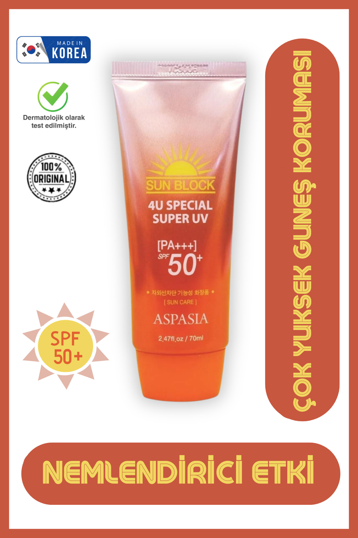 Aspasia Anti-Spot Moisturizing and Nourishing High Protection Factor Korean Sun Cream Spf50 Pa 70ml