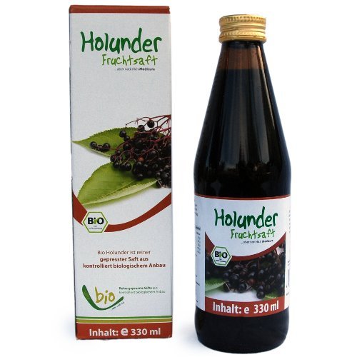 These pretty berries are also known as lilac berries. This name comes from the shrub, or rather its lilac-colored flowers. From May to July, the shrub blooms in all its splendor, and only in August do the 6 mm berries appear. The unripe red berries become incregly darker as they ripen and can only be harvested when they are black. Raw berries are not edible. Only after boiling or fermentation is the berry juice consumable. You can then make juice, syrup, jam, or other preserves. Thanks to its typically sweet taste, it also combines perfectly with other fruit juices or fruits. Try Holunder brand fruit juice on its own or mix up to 30 ml per day with other juices or into your yogurt. Cooked with a little honey, cinnamon, and cloves, elderberry juice makes a delicious and warming drink in winter. All our juices are, of course, 100 pure, additive-free, and always fresh. INGREDIENTS Elderberry Juice SAFETY WARNING Store the juice in a cool, dry place away from light. See moreBio Holunder Saft – 100 – Bouteille en verre 330 mlDESCRIPTION DU PRODUIT DESCRIPTION DU PRODUIT Les jolies baies sont également appelées baies de lilas. Ce nom provient de l'arbuste, ou de ses fleurs lilas. De mai à juillet, l'arbuste fleurit dans toute sa splendeur et seulement en août, les Baies de 6 mm. Les baies rouges non matures deviennent de plus en plus sombres avec leur degré de maturité et ne peuvent être récoltées que lorsqu'elles sont noires. Les baies brutes ne sont pas comestibles. Ce n'est qu'après l'ébullition ou la fermentation que le jus de baies est consommable. Vous pouvez ainsi faire du jus, du sirop, de la confiture ou autre. Grâce à son goût typiquement sucré, on peut également parfaitement le combiner avec d'autres jus de fruits ou fruits. Essayez le jus de fruits de la marque Holunder pur ou mélangez jusqu'à 30 ml par jour avec d'autres jus ou dans votre yaourt. Cuit avec un peu de miel, de cannelle et de clou de girofle, le jus de sureau donne une boisson savoureuse et chaude en hiver. Tous nos jus sont bien sûr 100 pur, sans additifs et toujours frais. INGRÉDIENTS Jus de sureau AVERTISSEMENT DE SÉCURITÉ Conservez le jus au sec, au frais et à l'abri de la lumière. Voir plus