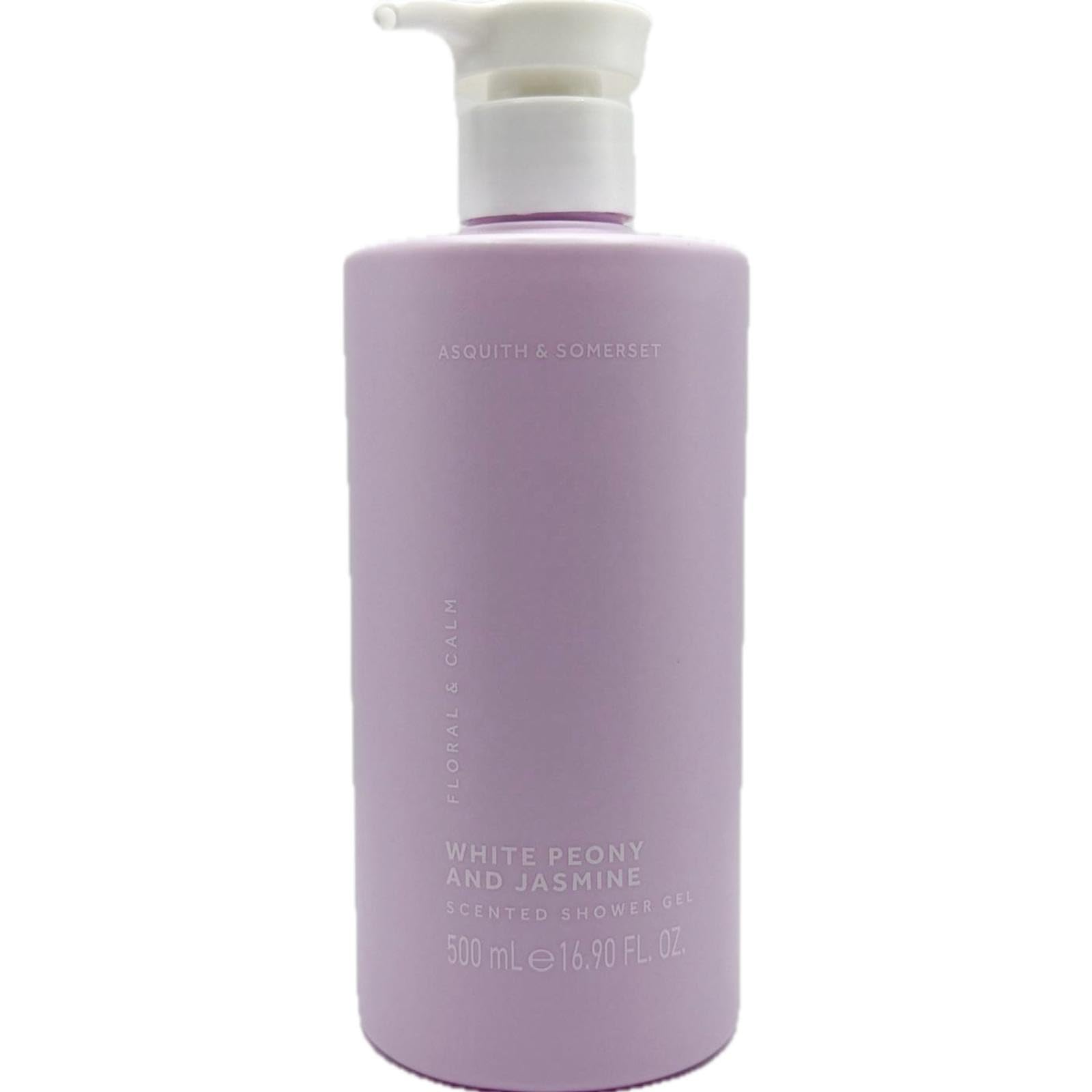 Indulge in a luxurious shower experience with this White Peony and Jasmine scented shower gel from Asquith Somerset. The elegant 16.90 fl. oz (500mL) bottle features a convenient pump dispenser for easy use. The soft lavender-colored packaging adds a touch of sophistication to any bathroom decor. This shower gel combines the delicate fragrance of white peony with the sweet, enchanting aroma of jasmine to create a captivating scent that lingers on your skin. The rich, creamy formula provides a gentle yet effective cleanse while maintaining skin's natural moisture balance. Perfect for daily use, this shower gel transforms your regular shower routine into a spa-like experience. The generous size ensures long-lasting use, while the practical packaging design prevents waste and spills.