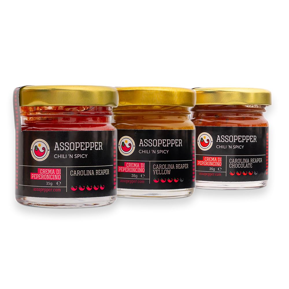 Assopepper di Massimo Utro CAROLINA REAPER RED YELLOW & CHOCOLATE TRIS OF 35g 99.9% Pepper CURRENT WORLD RECORD
