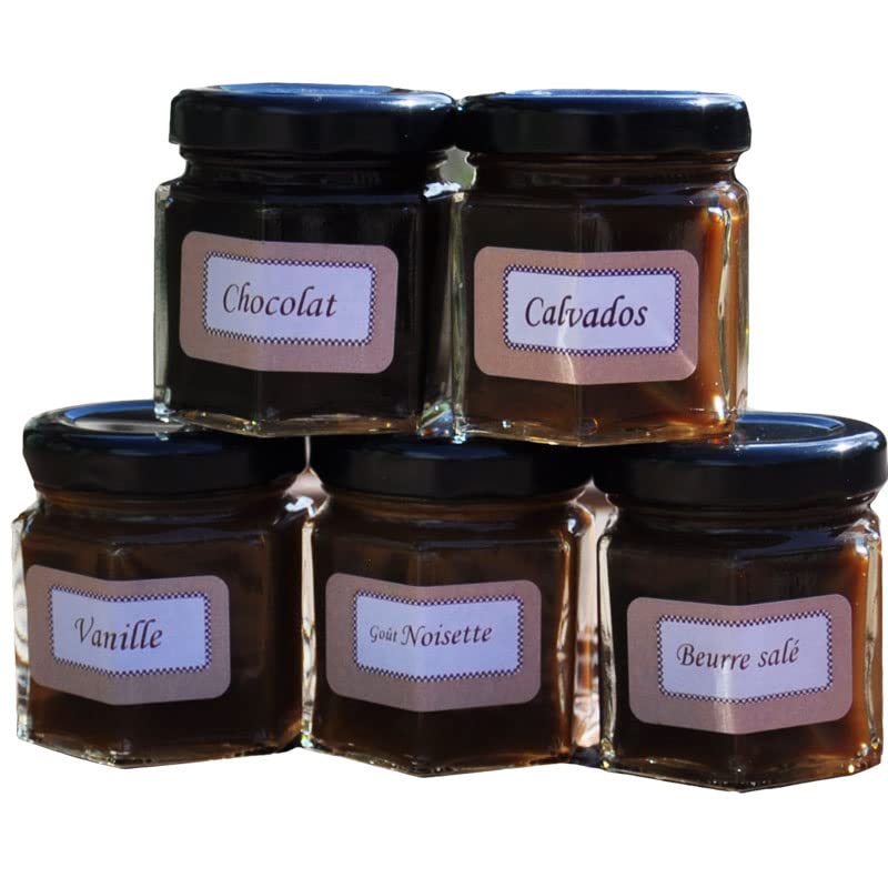 An assortment of 5 Isigny caramels to spread with salted butter. A smooth and gourmet product.-caramel cream-Caramel cream with hazelnut flavor-Chocolate caramel cream-Vanilla caramel cream-Caramel cream with salted butter Thanks to its light texture, you can spread this caramel with Isigny on pancakes, waffles or even on simple toast. INGREDIENTS Sugar, glucose syrup, water, fresh cream from Isigny AOP (8 ), whole milk powder, butter (including salted butter from Isigny A.O.P. (3.7 ), dietary fibre, chocolate (1.4 ), defatted cocoa, (0.4 ) ), IGP Guérande salt, flavourings, natural vanilla flavouring.Assortiment van 5 isigny karamelpasta's, 5x50g Een assortiment van 5 Isigny-karamels om te besmeren met gezouten boter. Een smeuïg en gastronomisch product.-karamelcrème- Karamelcrème met hazelnootsmaak- Chocoladekaramelcrème- Vanille-karamelcrème- Karamelcrème met gezouten boter Dankzij de lichte textuur smeer je deze karamel met Isigny op pannenkoeken, wafels of zelfs op eenvoudig geroosterd brood . INGREDIËNTEN Suiker, glucosestroop, water, verse room van Isigny AOP (8 ), volle melkpoeder, boter (inclusief gezouten boter van Isigny A.O.P. (3,7 ), voedingsvezels, chocolade (1,4 ), ontvette cacao, (0,4 ) ), IGP Guérande zout, aroma's, natuurlijk vanille aroma.
