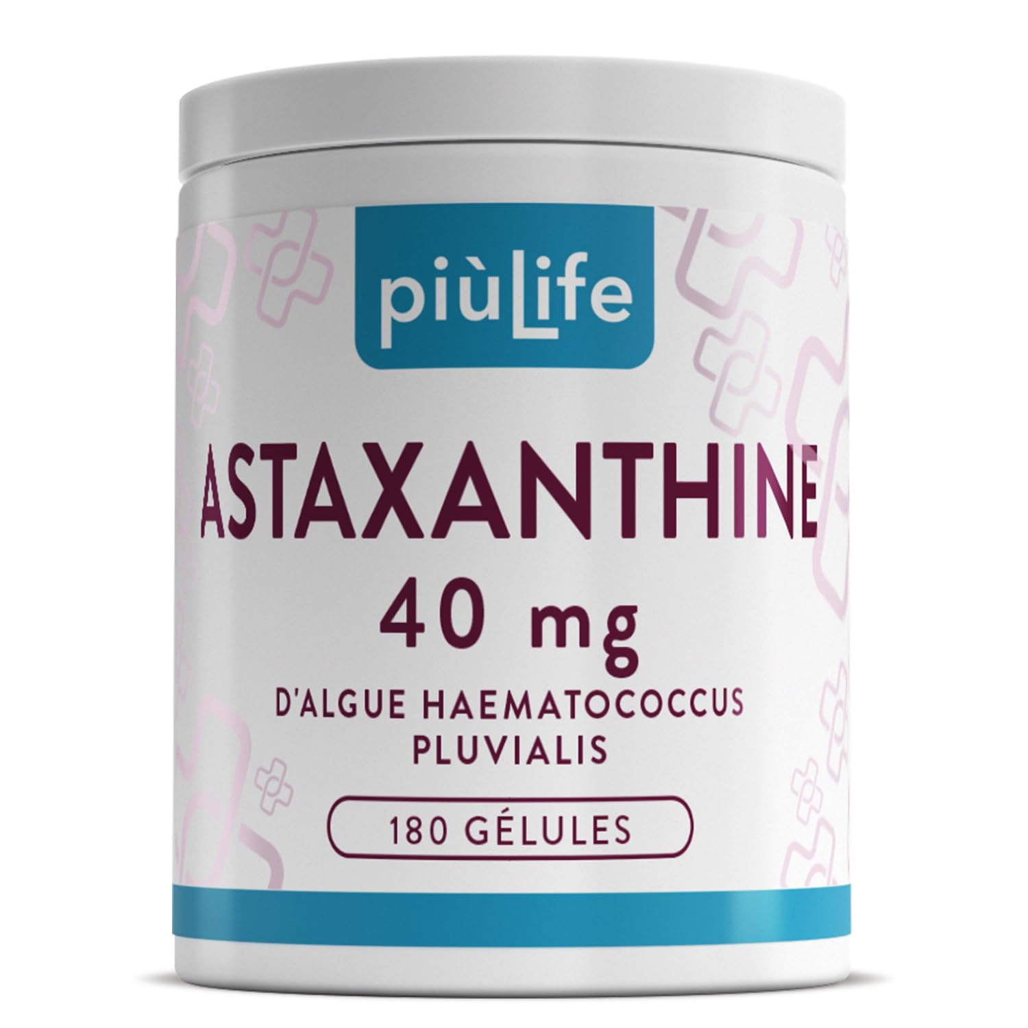 Looking for an alternative? Discover PiùLife Vitamin E or PiùLife Glutathione: two powerful antioxidants to strengthen your natural defenses. Combine PiùLife Astaxanthin with PiùLife Omega 3 IFOS for comprehensive support of overall well-being, or with PiùLife Collagen Hyaluronic Acid for healthy skin and joints. Vegetable capsules, gluten-free and lactose-free. Just 2 capsules a day is enough: a simple and convenient routine. Suitable for specific diets. Our organic astaxanthin is naturally sourced, highly bioavailable, and easily absorbed by the body. Each daily dose provides 2 mg of pure astaxanthin for optimal effect. Thanks to its antioxidant action, astaxanthin helps protect cells from oxidative stress caused by pollution, screens, and a hectic lifestyle. It supports healthy skin by promoting elasticity and helps maintain healthy vision. Choose Astaxanthin PiùLife to support your vitality and boost your energy naturally! This powerful carotenoid, extracted from the Haematococcus pluvialis algae – the most precious source – helps you fight oxidative stress and preserve your overall well-being.Vous cherchez une alternative ? Découvrez aussi Vitamine E PiùLife ou Glutathion PiùLife : deux antioxydants puissants pour renforcer vos défenses naturelles. Associez Astaxanthine PiùLife à Omega 3 IFOS PiùLife pour un soutien complet du bien-être général, ou à Collagène Acide Hyaluronique PiùLife pour une peau et des articulations en pleine forme. Gélules végétales, sans gluten ni lactose. 2 gélules par jour suffisent : une routine simple et pratique. Convient aux régimes spécifiques. Notre astaxanthine bio est d'origine naturelle, hautement biodisponible et facilement absorbée par l'organisme. Chaque dose quotidienne apporte 2 mg d'astaxanthine pure pour un effet optimal. Grâce à son action antioxydante, l'astaxanthine contribue à protéger les cellules du stress oxydatif causé par la pollution, les écrans et un mode de vie intense. Elle soutient la santé de la peau, en favorisant l'élasticité, et aide à maintenir une vision saine. Choisissez Astaxanthine PiùLife pour soutenir votre vitalité et faire le plein d'énergie naturellement ! Ce caroténoïde puissant, extrait de l'algue Haematococcus pluvialis – la source la plus précieuse – vous aide à combattre le stress oxydatif et à préserver votre bien-être global.Astaxanthine Pure à Haute Dose PiùLife, 40 mg de Haematococcus Pluvialis, 2 mg d'Astaxanthine Naturelle Biodisponible, Complément Antioxydant Puissant pour la Peau, Vision, Protection Cellulaire 180 gélules