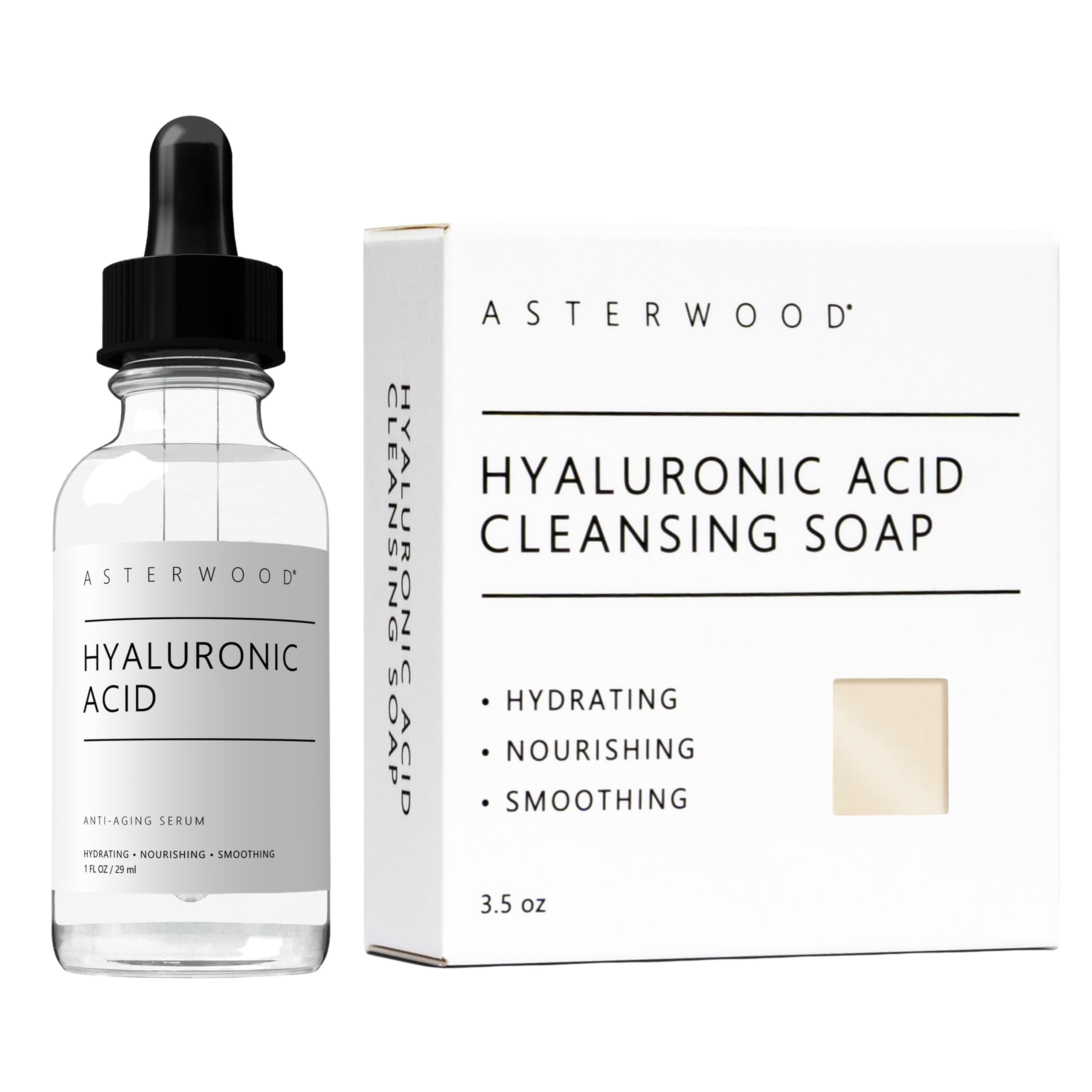 Asterwood Hyaluronic Acid Serum 1 oz + Hyaluronic Acid Cleansing Soap 3.5 oz