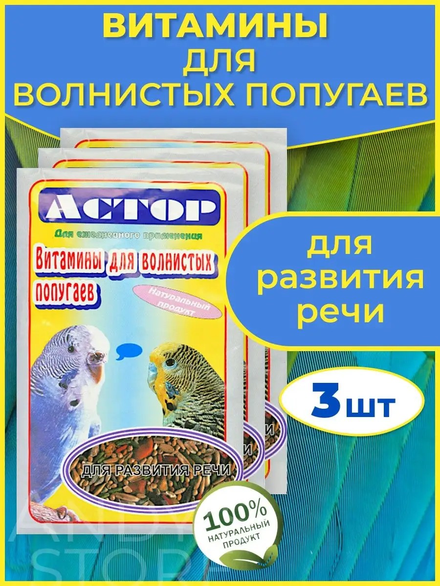 АСТОР Витамины для волнистых попугаев для развития речи 3шт