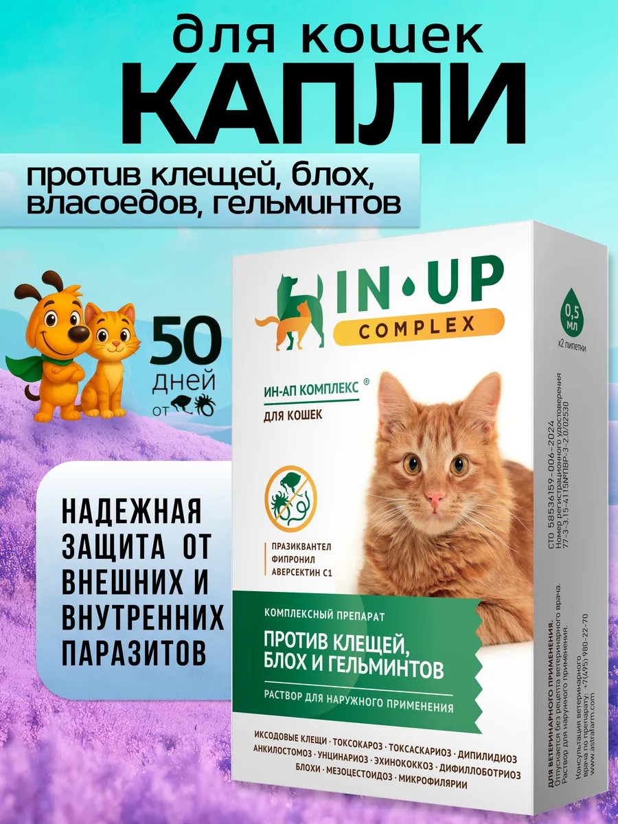 ИН-АП для кошек комплекс от клещей от АСТРАФАРМ — это надежный помощник в защите вашего питомца от паразитов. Средство от паразитов эффективно борется с блохами, вшами и глистами, обеспечивая комфорт и здоровье вашей кошке. Препарат от блох и клещей для кошек доступен в удобной форме, что упрощает его применение. Регулярное использование средства от глистов для кошек поможет сохранить вашу кошку здоровой и активной, защитив ее от неприятных последствий паразитарных инвазий.