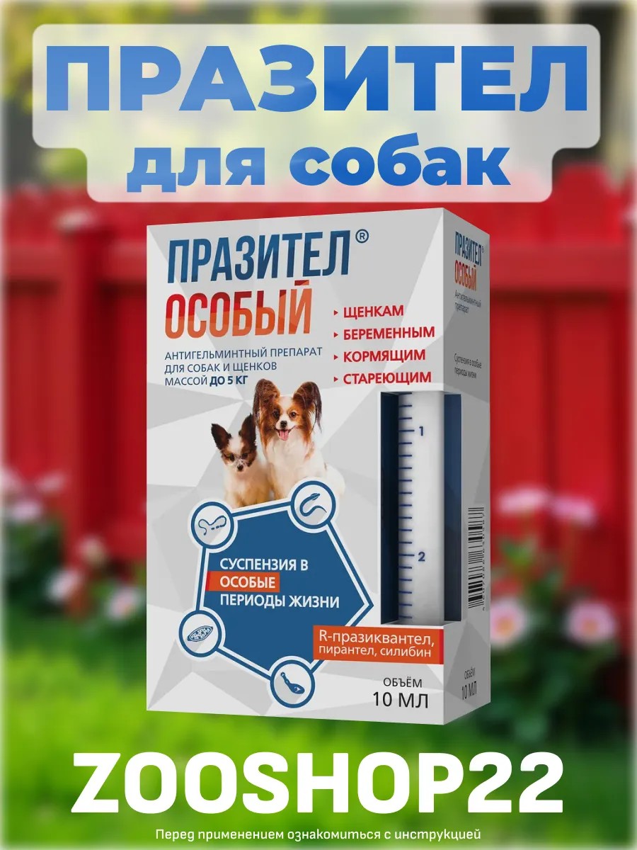 | Полное наименование товара | Празител Особый суспензия от глистов для щенков и собак мелких пород до 5 кг: против круглых и ленточных гельминтов, для дегельминтизации, при гельминтозе, 10 мл, со шприцем-дозатором |