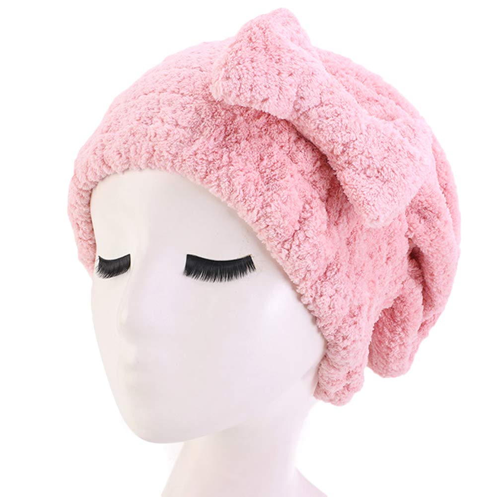 Asudaro Haarhandtuch, Frauen Mädchen Absorbierendes Handtuch aus Mikrofaser Turban-Kappe Verdickte Duschhaube Schnelltrocknende Tücher Bogen Turbanhut Haartrockentuch Badekappe Rosa