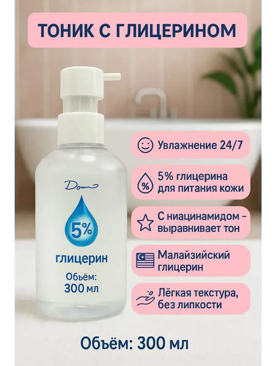 Увлажняющий тоник для лица с 5 % ниацинамида для лица и глубоко увлажняющим глицерином (300 мл) — идеальное средство для ухода и восстановления кожи. Этот тоник действует как легкая сыворотка с ниацинамидом, при этом не уступает по комфорту гликолевому тонику, но бережнее, благодаря мягкому действию глицерина жидкого.