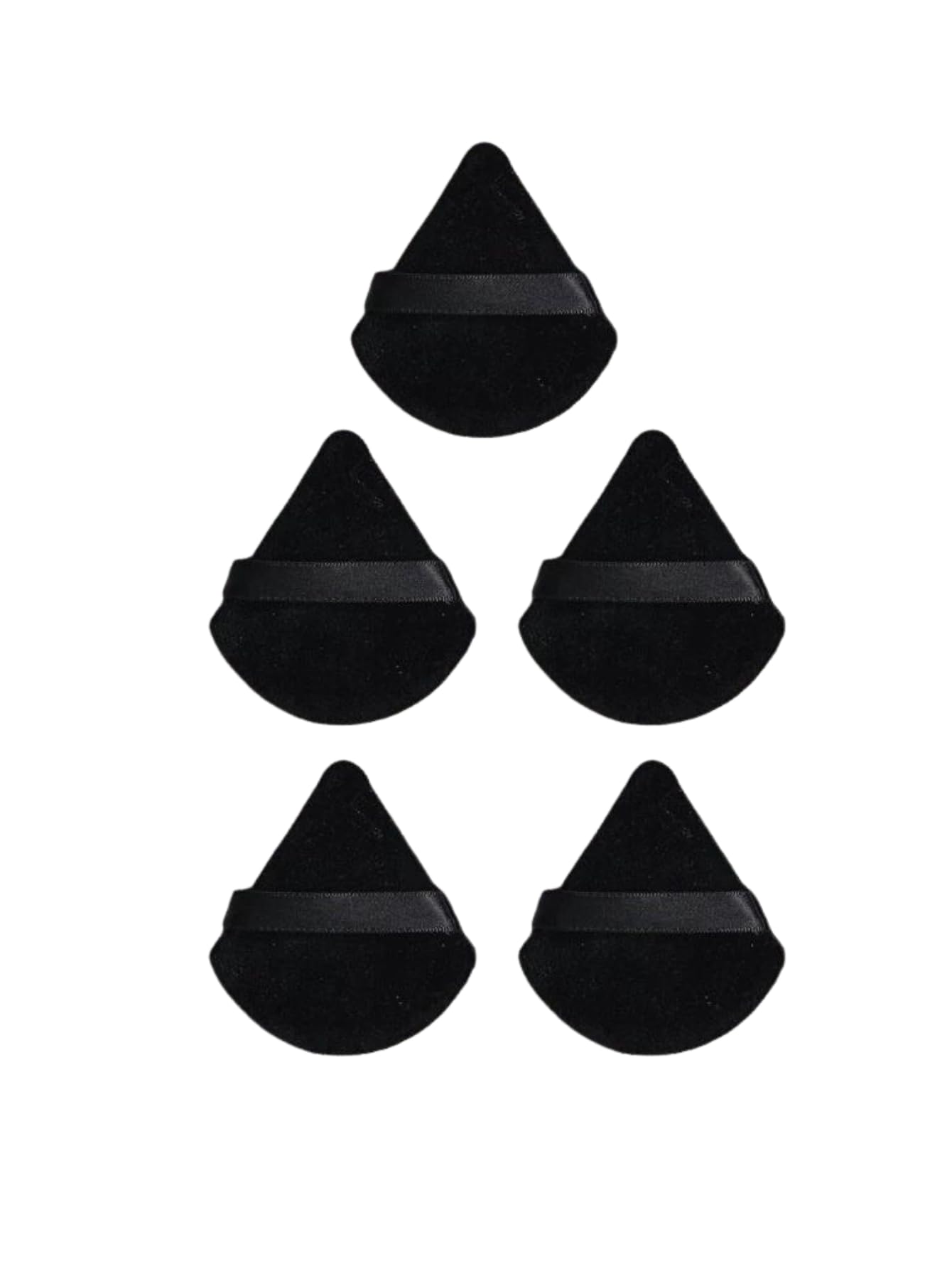 fiber material, providing a luxurious and soothing touch on your skin. Acting as a protective barrier, they guarantee a comfortable and seamless makeup application, leaving you with a natural and even finish. Convenient: Each set includes 5 black powder puffs that are thoughtfully designed with triangle dimensions. These puffs fit comfortably in your hand and effortlessly glide across your face, making your makeup routine effortless and hassle-free. Versatile and Reliable: Our triangle-shaped powder puffs are suitable for both dry and wet cosmetics. Whether it's foundation, blush, loose powder, or concealer, these puffs flawlessly apply makeup to various areas like the nose and undereyes, ensuring precise and immpecable results. Convenient and Trustworthy: Our cosmetic makeup puffs are thoughtfully designed to make your makeup routine a breeze. The plush texture of the puffs prevents excessive powder absorption, allowing for precise and even application. With the added benefit of a secure strap, you can confidently hold the puff in place, ensuring a seamless makeup application without any slipping or mishaps. Enjoy the ease and reliability of our makeup puffs, simplifying your beauty routine with every use Experience effortless and flawless application with the innovative design. Enjoy the utmost comfort and softness during your makeup routine. With versatile applications and reliable functionality, our puffs are essential tools for achieving a professional and immaculate look.Seamless & Smooth Makeup Application: Our versatile cushion puff and makeup blender cater to all your makeup needs. From foundation, cream, concealer, blusher, powder, to highlighter, it offers a comprehensive solution for a seamless and smooth makeup application. The puff's pointed tip ensures precision and professional results, whether you're setting concealer under the eyes or contouring the face. Embrace effortless beauty with our high-quality powder puff. Soft, Washable, and Durable: The puff's soft texture enhances makeup application, providing a seamless and flawless finish. And don't worry about cleanliness; the puff is washable, easy to maintain its hygiene. Just wash it with soap and water and let it air dry. Furthermore, it's constructed with a sponge material inside, enhancing its durability and performance. Introducing our Dual Ribbon Design Powder Puff: Effortless Foundation Application made easy. This innovative powder puff features a unique dual ribbon design that replaces the need for a brush, allowing for hands-free foundation application. The practical rayon ribbons ensure a secure grip, providing precise and controlled coverage, leaving messy fingers in the past and delivering a seamless makeup routine. easy to use seamless application durable and lasting finish double sided. Versatile design with unique shapes for different makeup needs Crafted from ultra-soft material for a gentle touch makeup application Comes in a convenient size with perfectly sized triangle dimensions Effortless and convenient makeup application Suitable for both dry and wet cosmetics Ideal for foundation, blush, loose powder, and concealer Provides precise and flawless results Thoughtfully designed for easy handling and control during application.