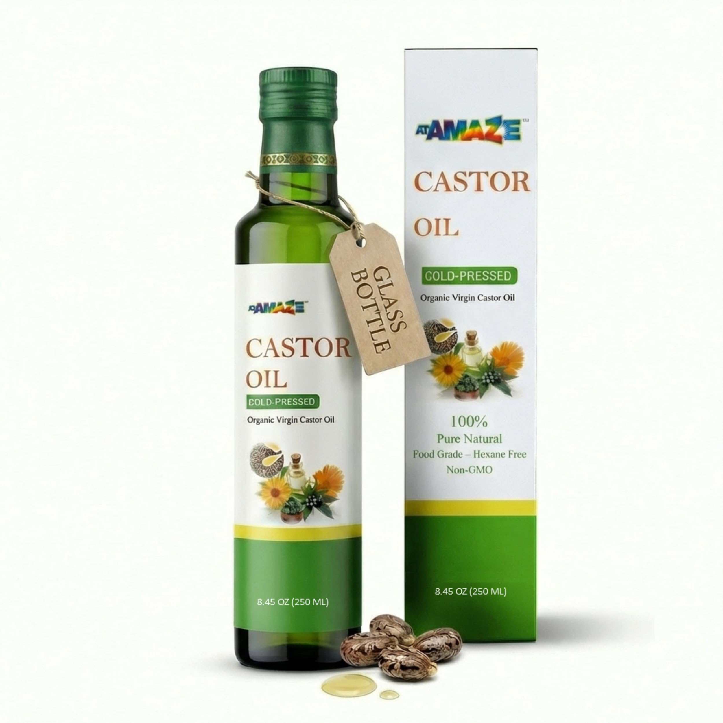 This Organic Castor Oil is produced using a traditional cold-pressed extraction method to help retain its natural properties. The oil is extra virgin, unrefined, and hexane-free, offering a clean and simple formulation suitable for everyday personal care. Commonly used as castor oil for hair growth, it helps condition the scalp and support healthier-looking hair when used consistently. It is especially popular among users seeking a gentle, plant-based option for regular hair care routines. For beauty care, this oil is widely applied to lashes and brows as castor oil for eyelashes and eyebrows. It works well as an eyelash growth oil and eyebrow growth oil, helping maintain a neat, conditioned appearance without harsh ingredients. The oil is packaged in a green tinted glass bottle, which helps preserve freshness and maintain product quality over time. Glass packaging also aligns with customers who prefer minimal interaction between oil and packaging materials. In addition to hair and beauty use, this natural castor oil is suitable for skin care, massage, and oil packs. Some consumers also use castor oil as an edible or ingestible oil however, professional guidance is recommended before internal use.Multi-Purpose Use: Suitable for hair, lashes, brows, and skin care routines. It can also be used for massage or oil packs. For internal use, consult a qualified healthcare professional. Glass Bottle Packaging: Packaged in a glass bottle to help preserve oil quality and freshness. Glass packaging helps protect the integrity of cold-pressed castor oil better than plastic containers, it comes with a spout for non-spill pouring. Pure Organic Quality: Made from organic castor seeds using the cold-pressed method. Extra virgin, unrefined, and hexane-free castor oil with no additives, fillers, or synthetic ingredients. Eyelash Eyebrow Conditioning: Ideal for eyelash and eyebrow care. Frequently used as castor oil for eyelashes growth, eyebrow oil for growth, and lash conditioning serum to maintain well-groomed brows and lashes. Hair Scalp Care: Cold pressed Castor Oil formulated to nourish the scalp and support healthy-looking hair. Suitable for routine hair care and commonly used as castor oil for hair growth for women and men.