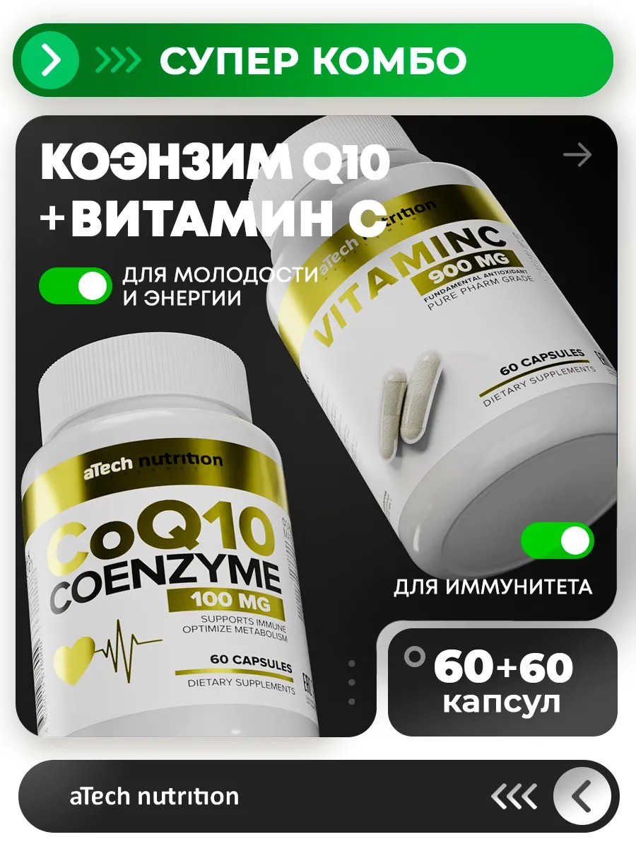 aTech nutrition Набор витаминов для энергии Коэнзим Q10 и Витамин С