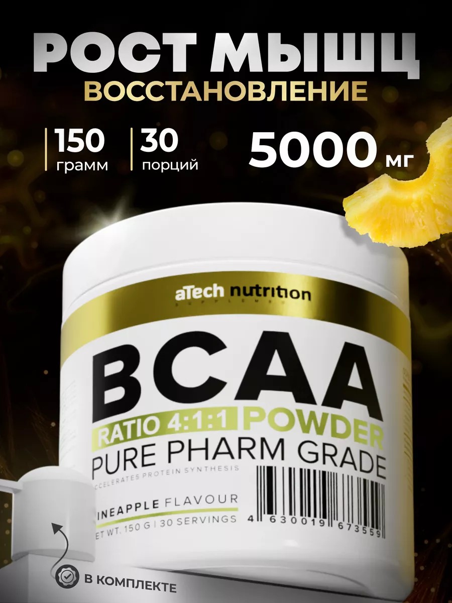 Спортивное питание, аминокислотный комплекс Бца 4:1:1 порошок от aTech Nutrition со вкусом ананаса.