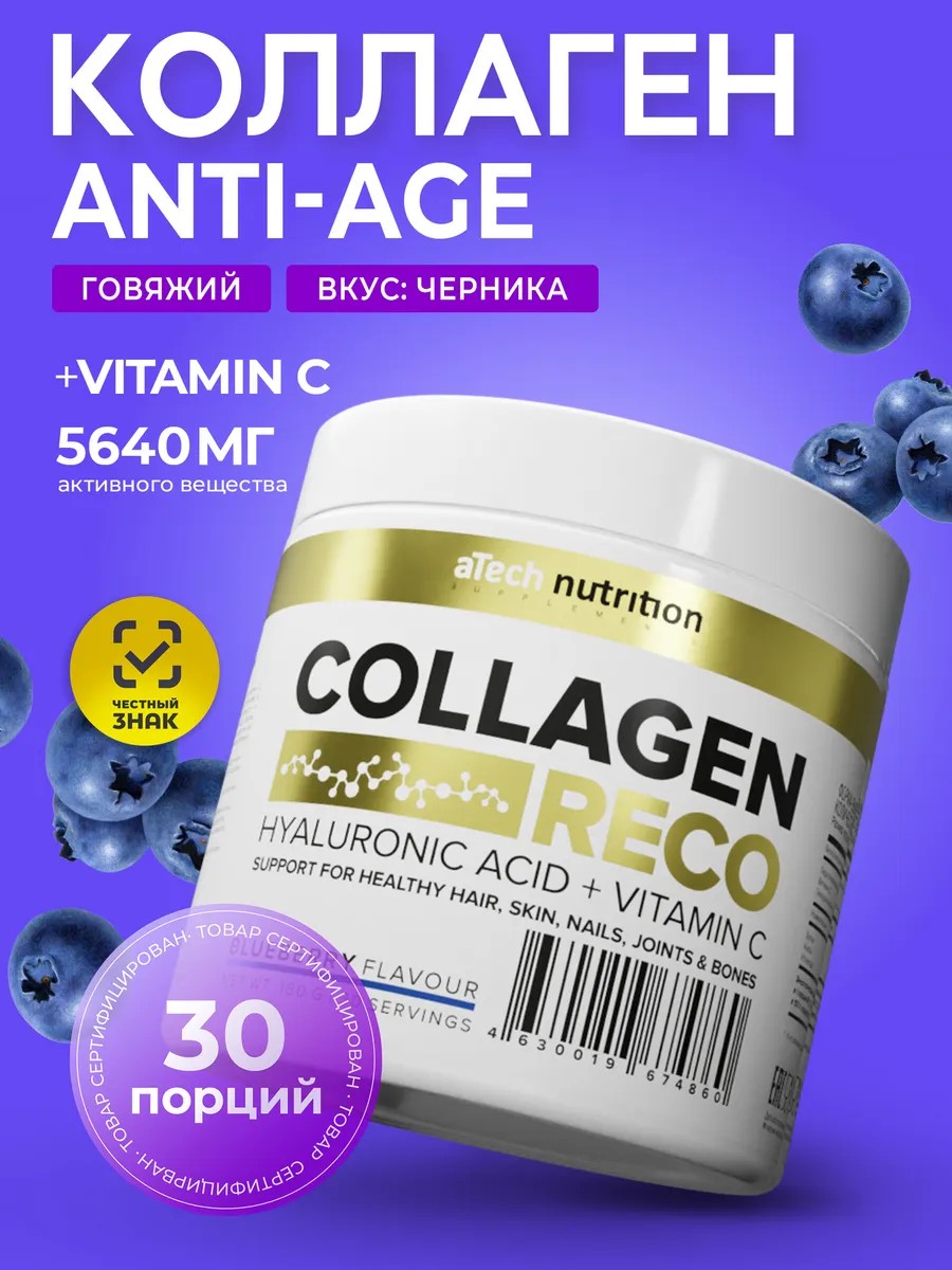 aTech nutrition Коллаген говяжий порошок с гиалуроновой кислотой 180 гр