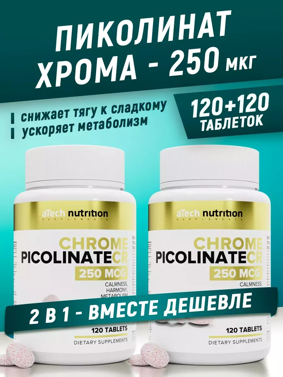 aTech nutrition Бад Пиколинат хрома Набор 120 + 120 таблеток