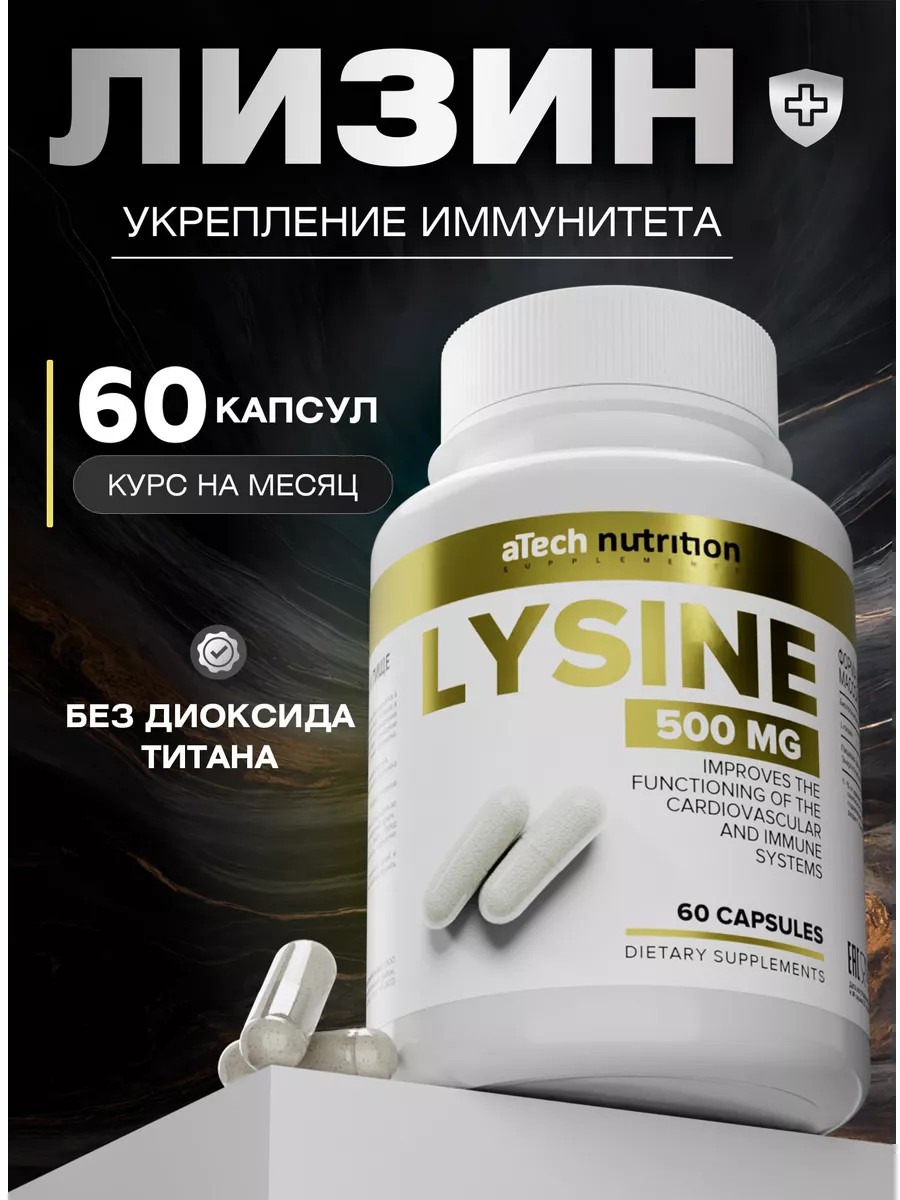 L лизин aTech nutrition - незаменимая аминокислота, которую организм не синтезирует самостоятельно, а получает только с едой и пищевыми добавками. Она необходима как спортсменам, так и здоровым людям для поддержания работы сердечно-сосудистой и иммунной системы, красоты и привлекательности за счет формирования карнитина, отвечающего за состояние волос и кожи. Поскольку лизин участвует в синтезе коллагена, он помогает быстрее заживлять раны и восстанавливать кожный покров. Эффективен в борьбе с инфекциями вируса герпеса.