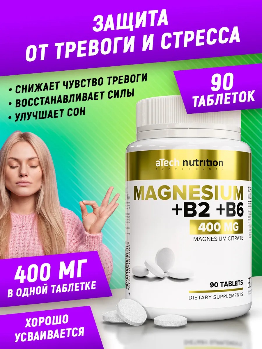aTech nutrition Магний цитрат + В2 В6 витамины успокоительное