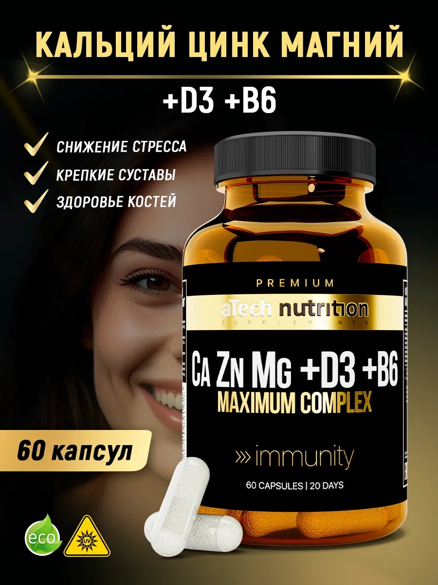 aTech nutrition Premium Calcium Zinc Magnesium D3 + B6 60 капсул