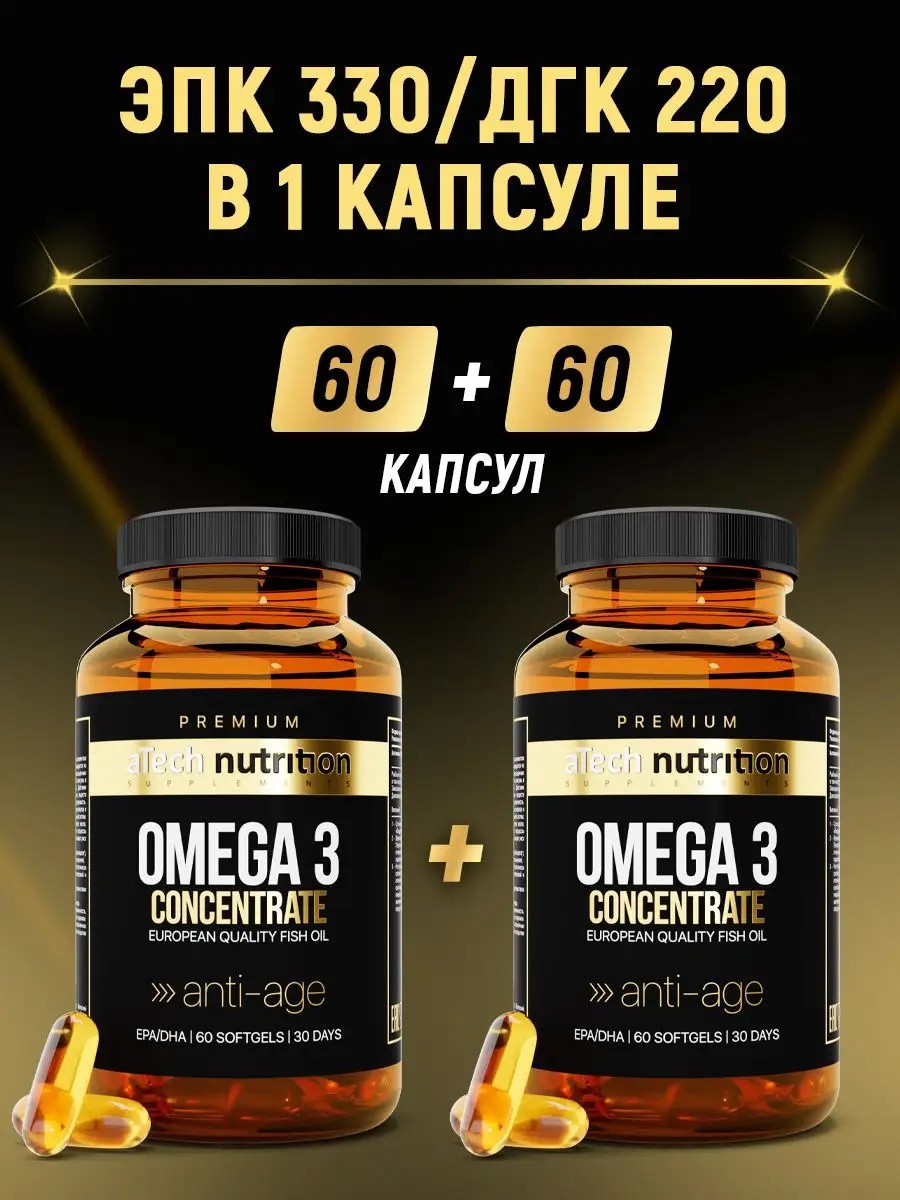 aTech nutrition Premium Омега 3 OMEGA 3 рыбный жир 1000 мг, 60 + 60 капсул