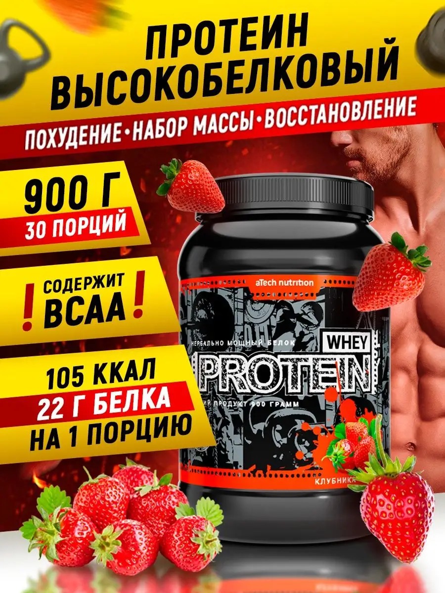 aTech nutrition Протеиновый коктейль Whey Protein 900 г. Клубника