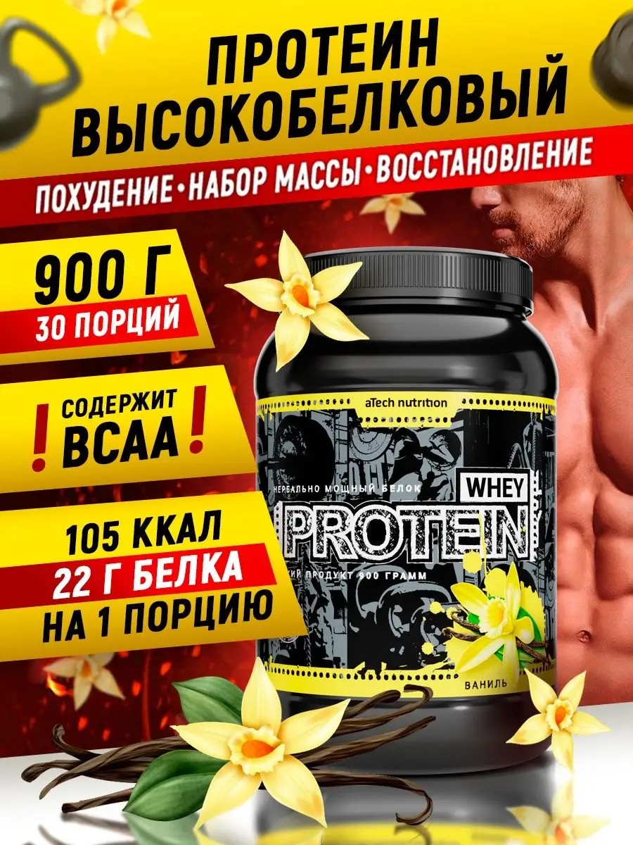 aTech nutrition Протеиновый коктейль Whey Protein 900 г. Ваниль