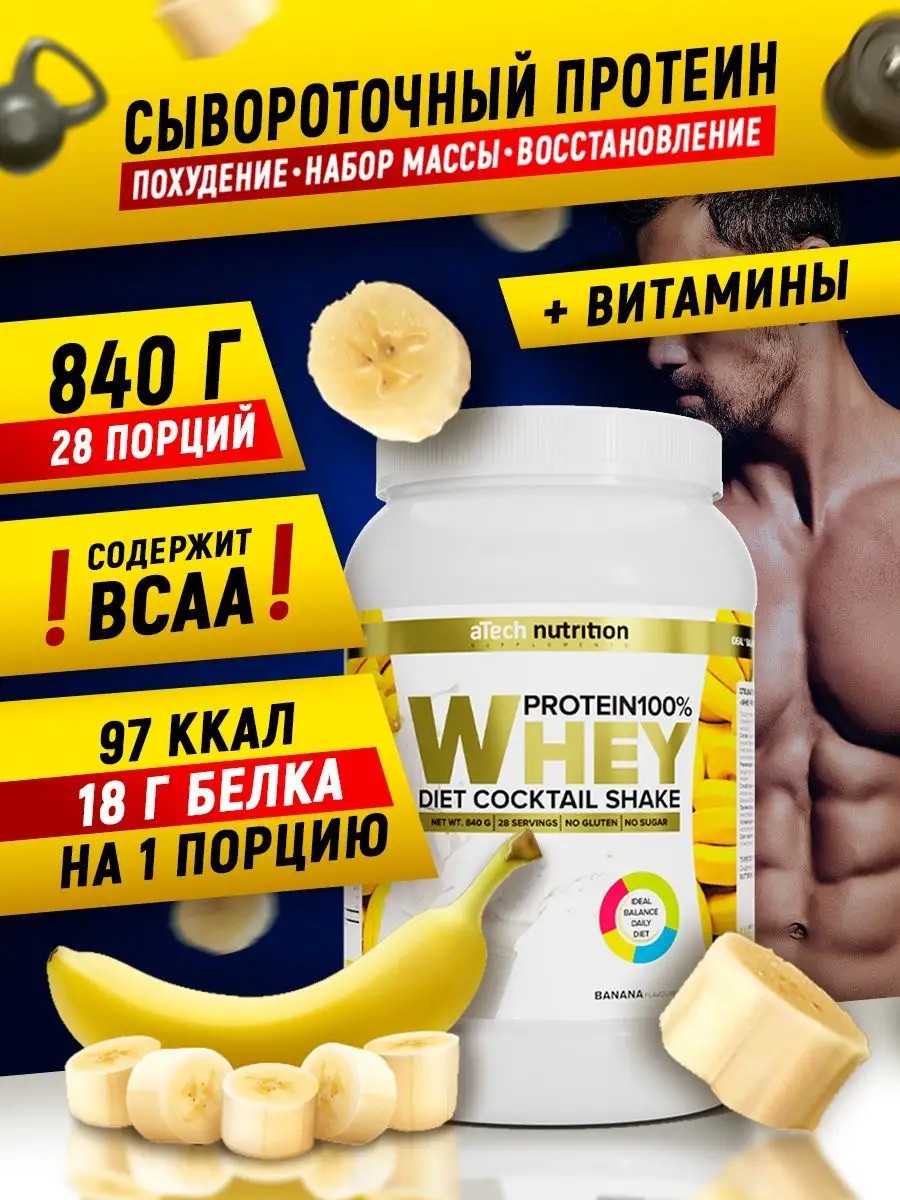 aTech nutrition Протеин сывороточный для похудения 840 г. Банан