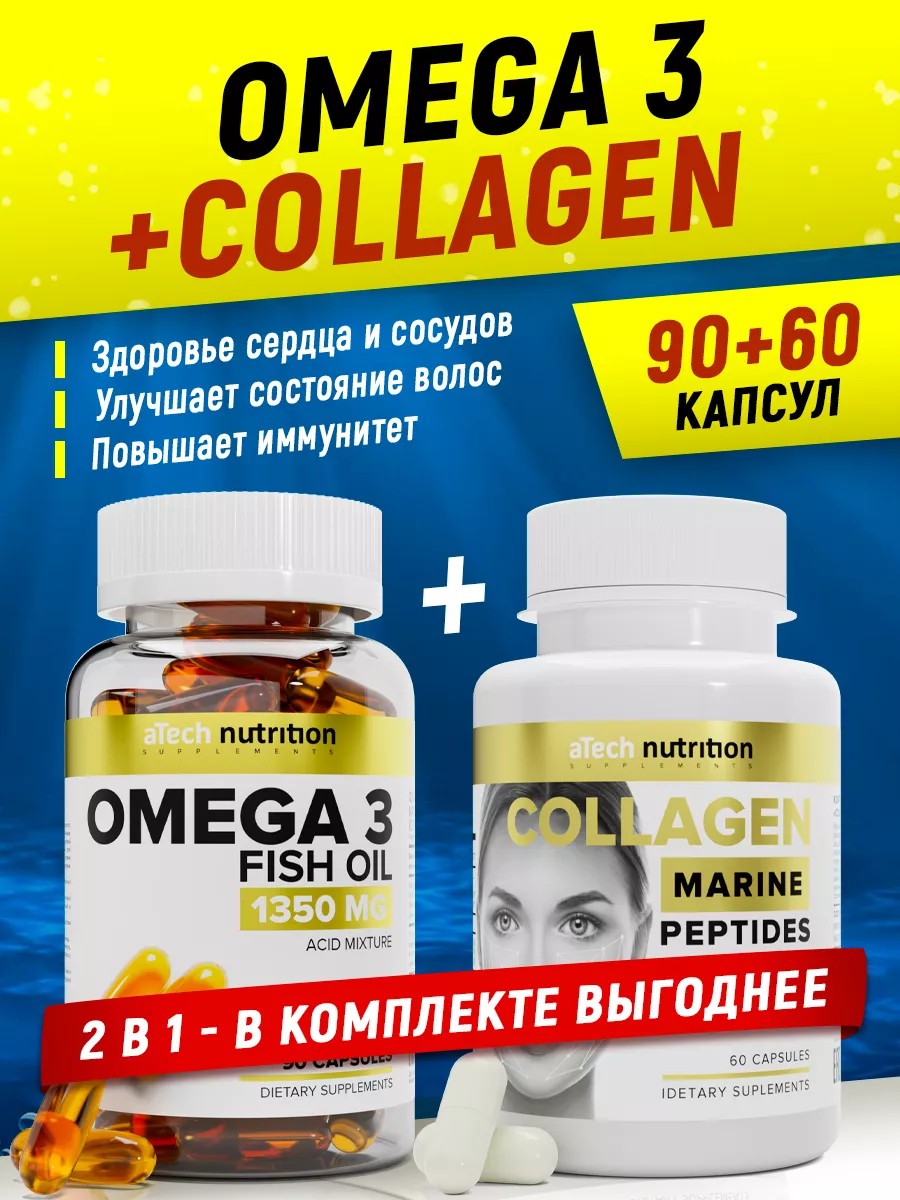 | Комплектация | "Омега 3" 90 кап aTech; "MARINE COLLAGEN" 60 капсул |