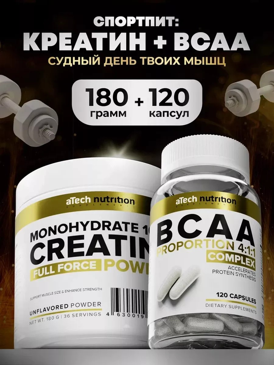 aTech nutrition Спортивное питание Креатин и BCAA 120 капсул Предтрен