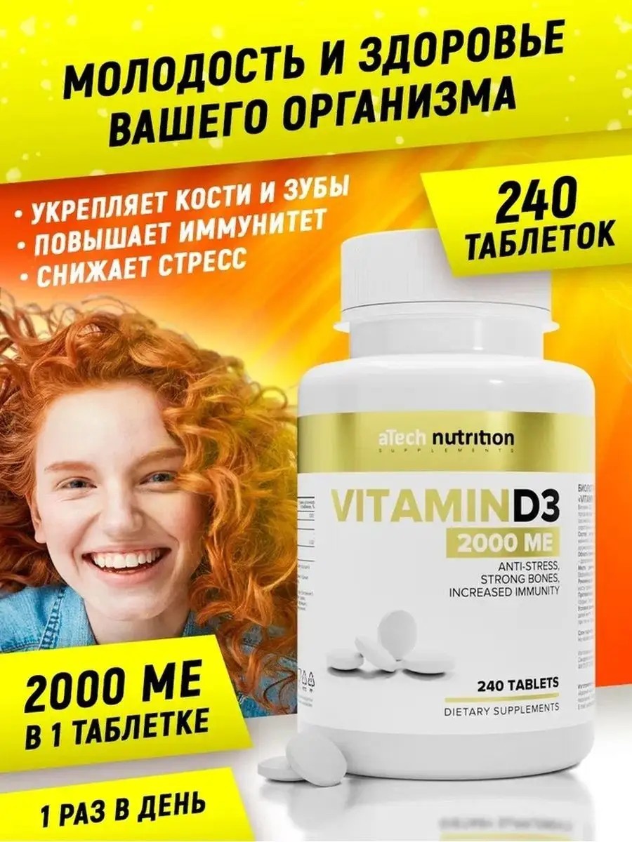 aTech nutrition Витамин д3 2000 240 таблеток для иммунитета БАД