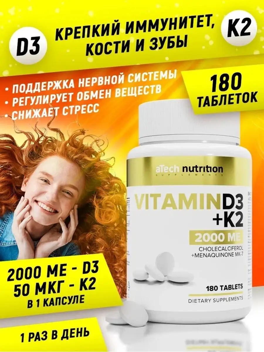 aTech nutrition Витамин Д3 К2 2000 180 таблеток