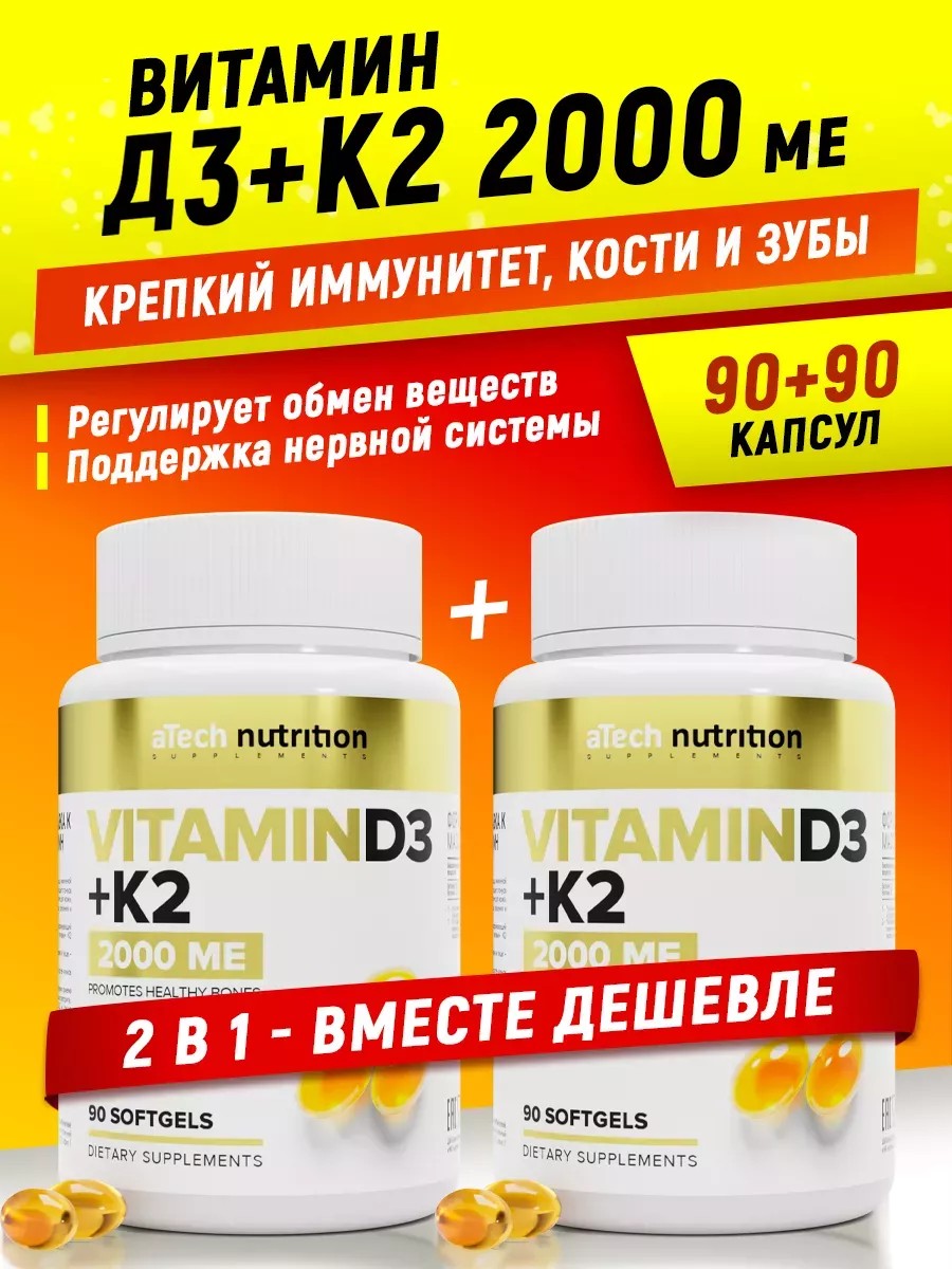 aTech nutrition Витамин Д3 + К2 2000 МЕ БАД Набор 90 + 90 капсул