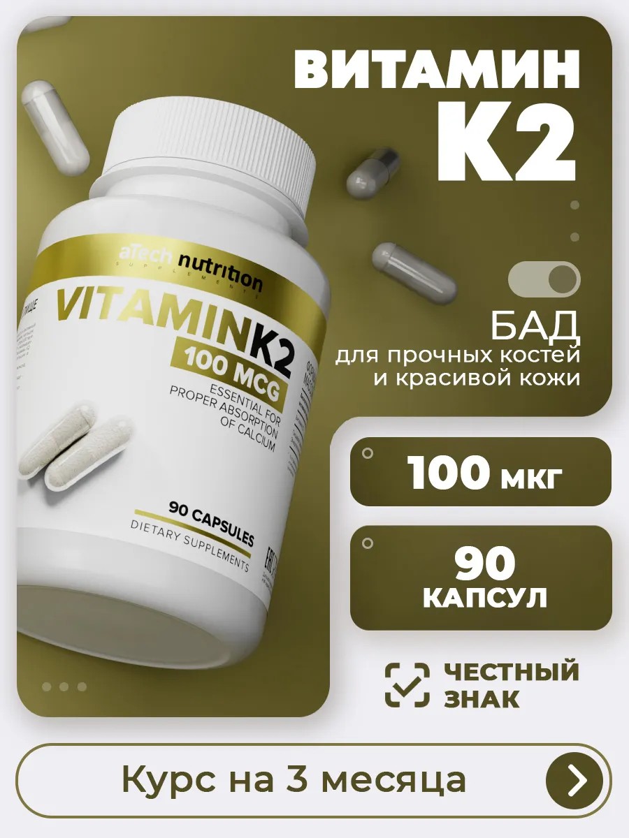 aTech nutrition Витамин К2 для ЖКТ и костей мк-7 90 капсул