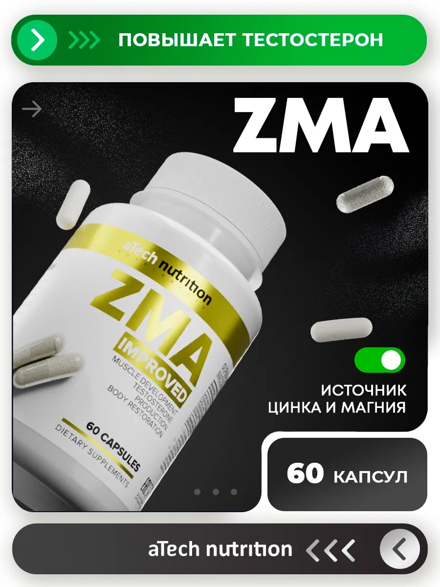 Представляем ZMA витамины aTech nutrition - превосходную добавку для оптимальной производительности и восстановления. Насыщенный мощной смесью цинка, магния и витамина В6, ЗМА aTech nutrition разработан витамины для спорта для поддержки ваших фитнес-целей и улучшения общего самочувствия.Наша передовая формула обеспечивает идеальное сочетание ингредиентов витаминов для роста восстановления мышц, улучшения качества сна и повышения уровня тестостерона. Восполняя организм необходимыми минералами и витаминами, ZMA капсулы aTech nutrition помогает вам достичь пика производительности и максимизировать результаты.Для мужчин:Повысьте свою работоспособность и поддержите свой организм с помощью витаминно-минеральный комплекс для мужчин ZMA для мужчин . Специально разработанная для удовлетворения уникальных потребностей активных мужчин в питании, наша смесь ZMA сочетает в себе цинк, магний и витамин B6 для оптимизации уровня тестостерона, восстановления мышц и спокойного сна. Повышение энергии, силы и выносливости с нашими высококачественными витаминами ZMA - идеальная добавка для любого мужчины для набора веса, стремящегося максимально улучшить свою физическую форму и спортивные результаты.Для женщин:Раскройте свой потенциал и поддержите свой организм с помощью наших высококачественных витаминов ZMA для женщин. Разработанная с учетом особых потребностей активных женщин в питании, наша формула ZMA сочетает в себе цинк, магний и витамин B6, которые помогают сбалансировать гормональный фон, способствуют восстановлению мышц и улучшают качество сна. Заряжайтесь энергией, улучшайте физическую форму и достигайте своих целей с помощью наших тщательно разработанных витаминов ZMA. Придайте себе сил и повысьте работоспособность с помощью нашей первоклассной добавки, предназначенной для женщин, которые стремятся к совершенству в своей физической форме и общем самочувствии.Также в нашем ассортименте есть поливитамины, мультивитамины для мужчин и для женщин, витамины для спортсменов, добавки для набора массы тела.Данный продукт не является лекарственным средством.