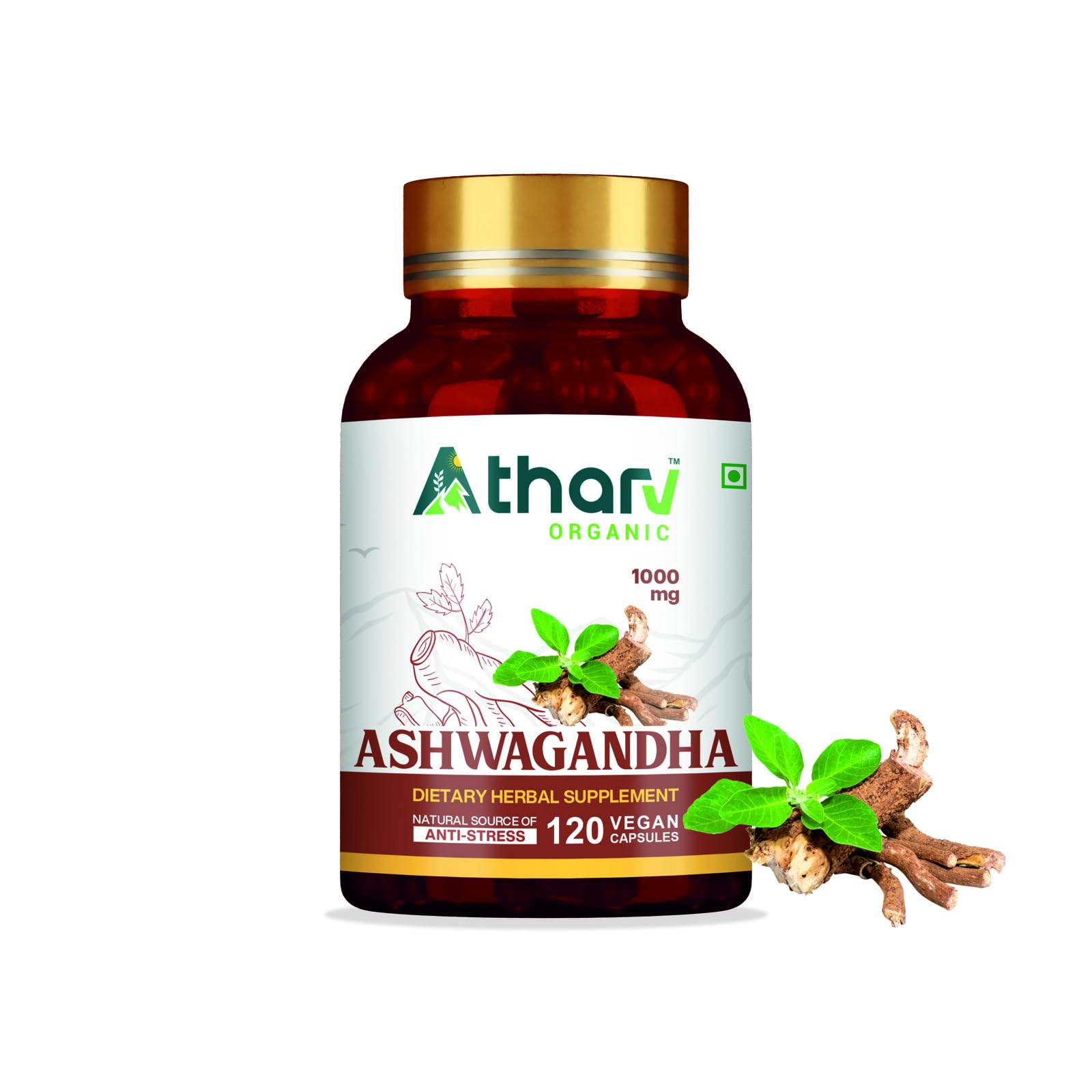 ATHARV ORGANIC Ashwagandha Supplement1000 mg Veggie Capsules Organic Ashwagandha Root Extract Non-GMO Gluten Free (120 Capsule)
