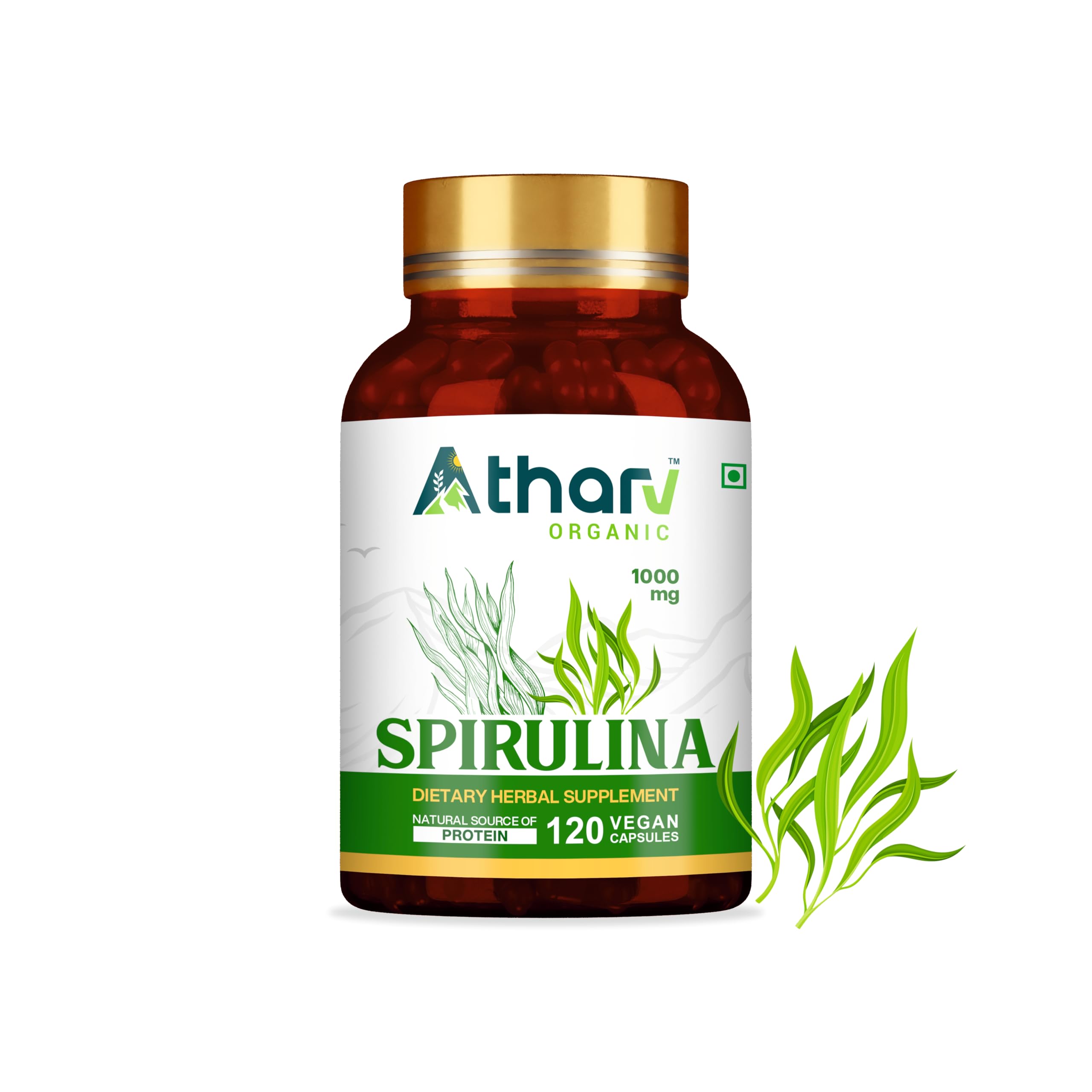 ATHARV ORGANIC Spirulina Supplement 1000mg | 120 Vegan Capsules | Rich in Natural Nutrients | Non-GMO & Gluten-Free | Daily Wellness Support