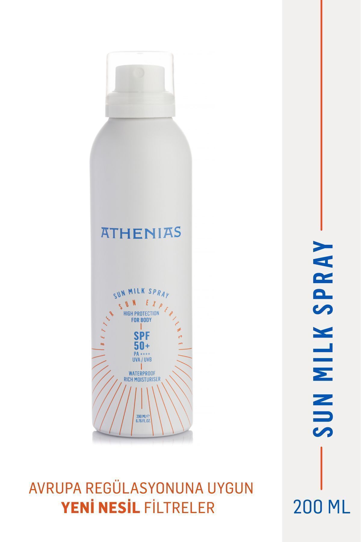 Athenias Sun Milk Spray 200 ml Spf50+ UVA UVB High Protection Sun Cream for All Skin Types