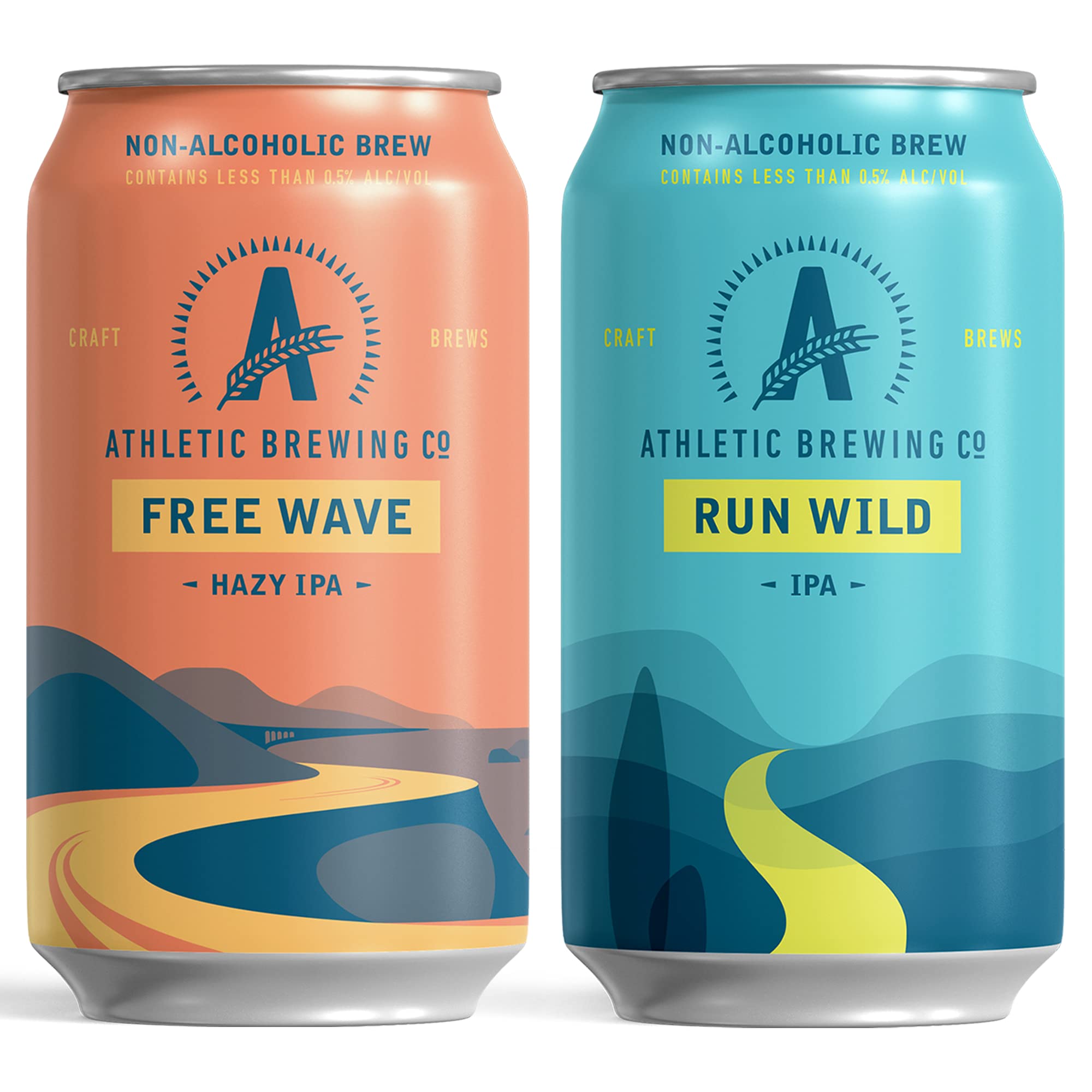 Athletic Brewing Company Craft Non-Alcoholic Beer - Mix 12-Pack - Run Wild IPA and Free Wave Hazy IPA - Low-Calorie, Award Winning - All Natural Ingredients For Great Tasting Drink - 12 Fl Oz Cans Free Wave | Run Wild 12 Fl Oz (Pack of 12)