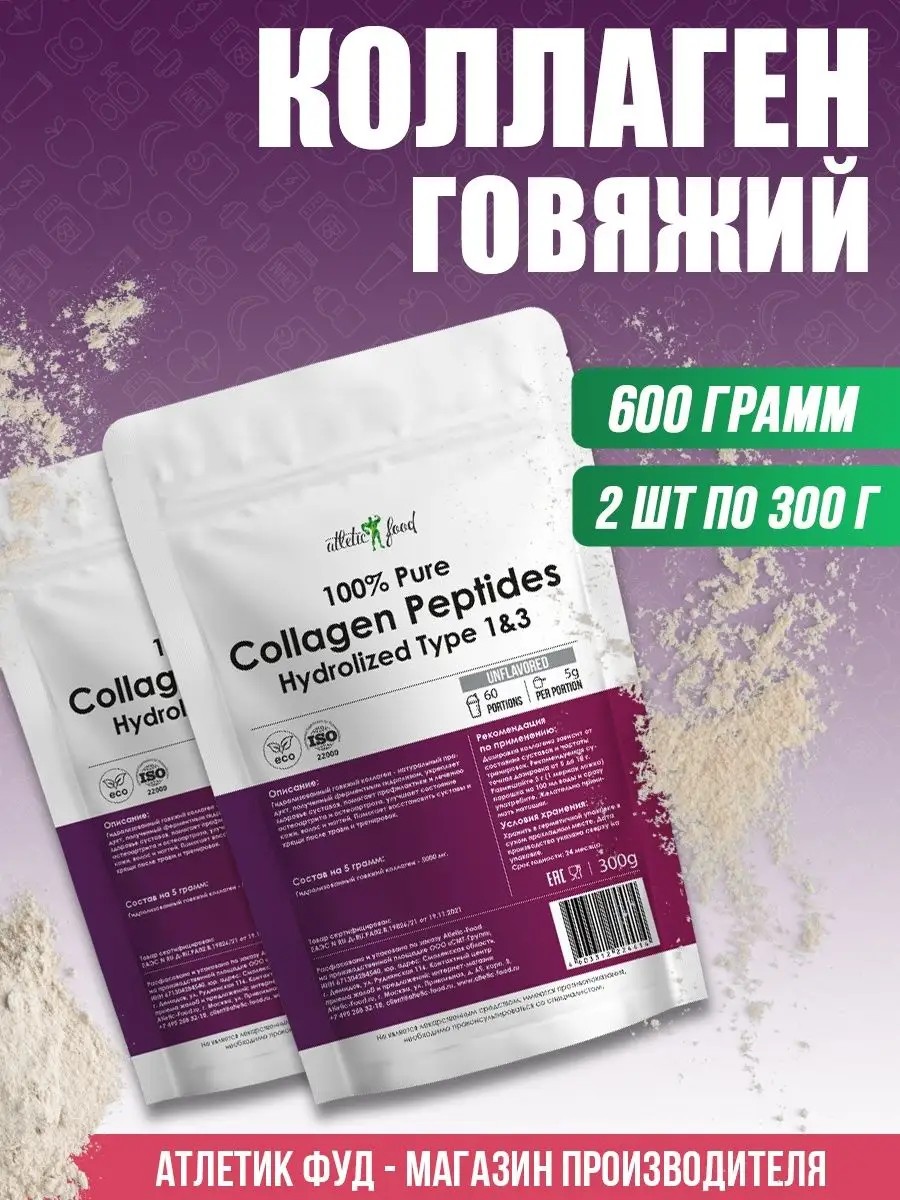 ATLETIC FOOD Говяжий коллаген 1&3 Pure Collagen Peptides