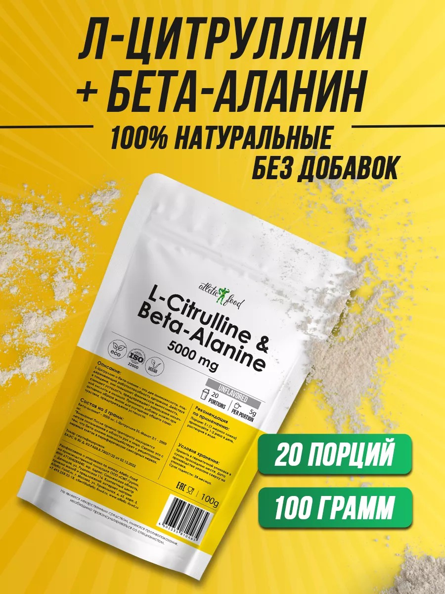 ATLETIC FOOD Цитруллин+бета-аланин L-Citrulline & Beta-Alanine, 100 г