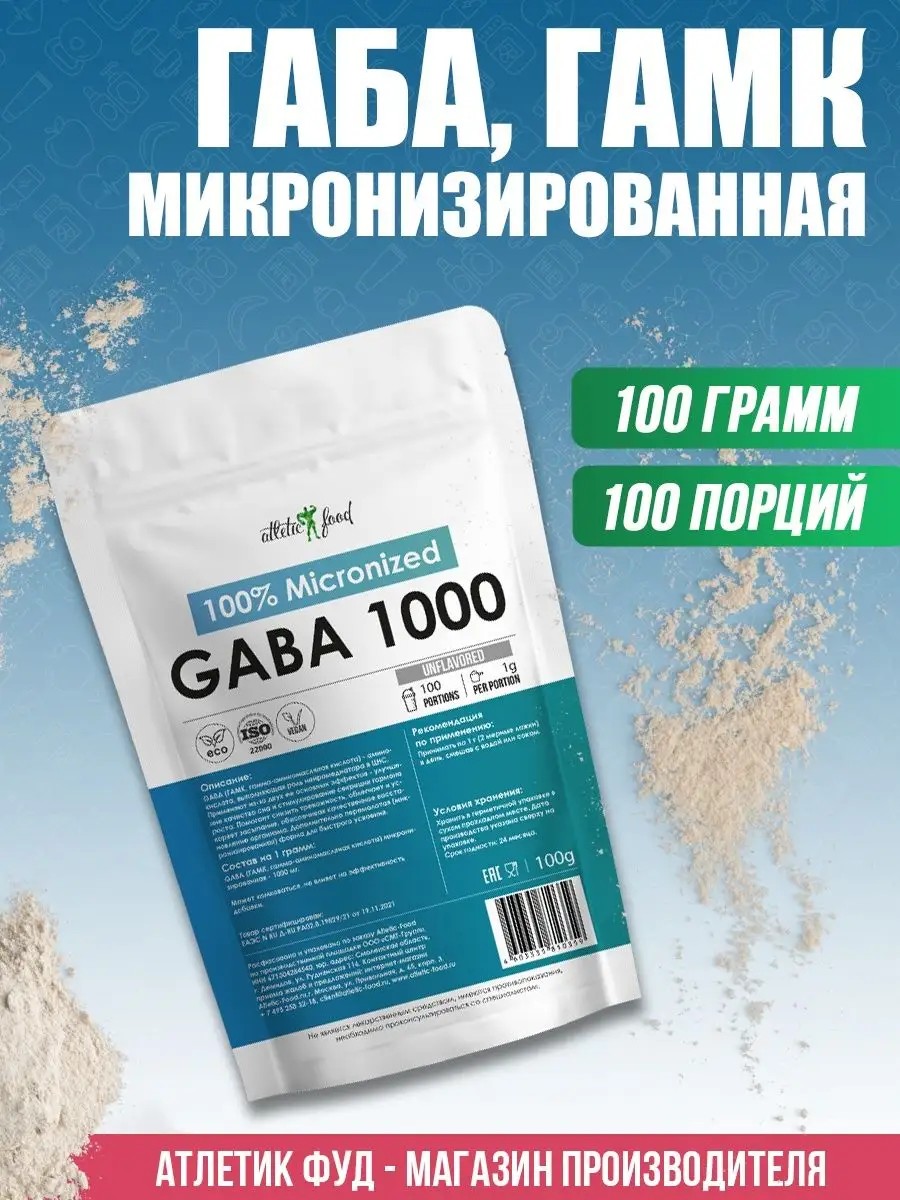 ATLETIC FOOD ГАБА, ГАМК 100% Pure Powder GABA, 100 г