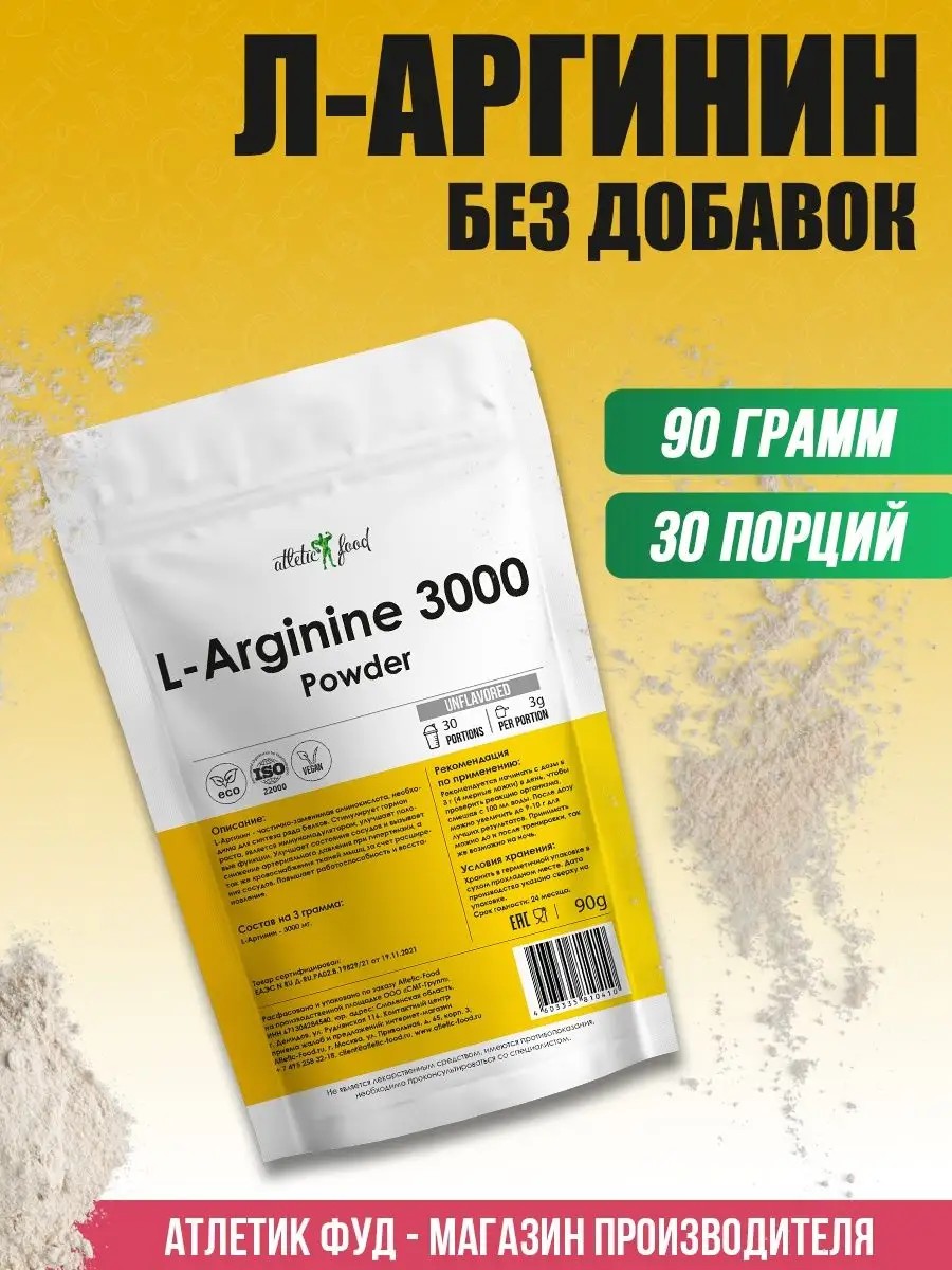 ATLETIC FOOD Л-Аргинин L-Arginine 3000 Powder, 90 г