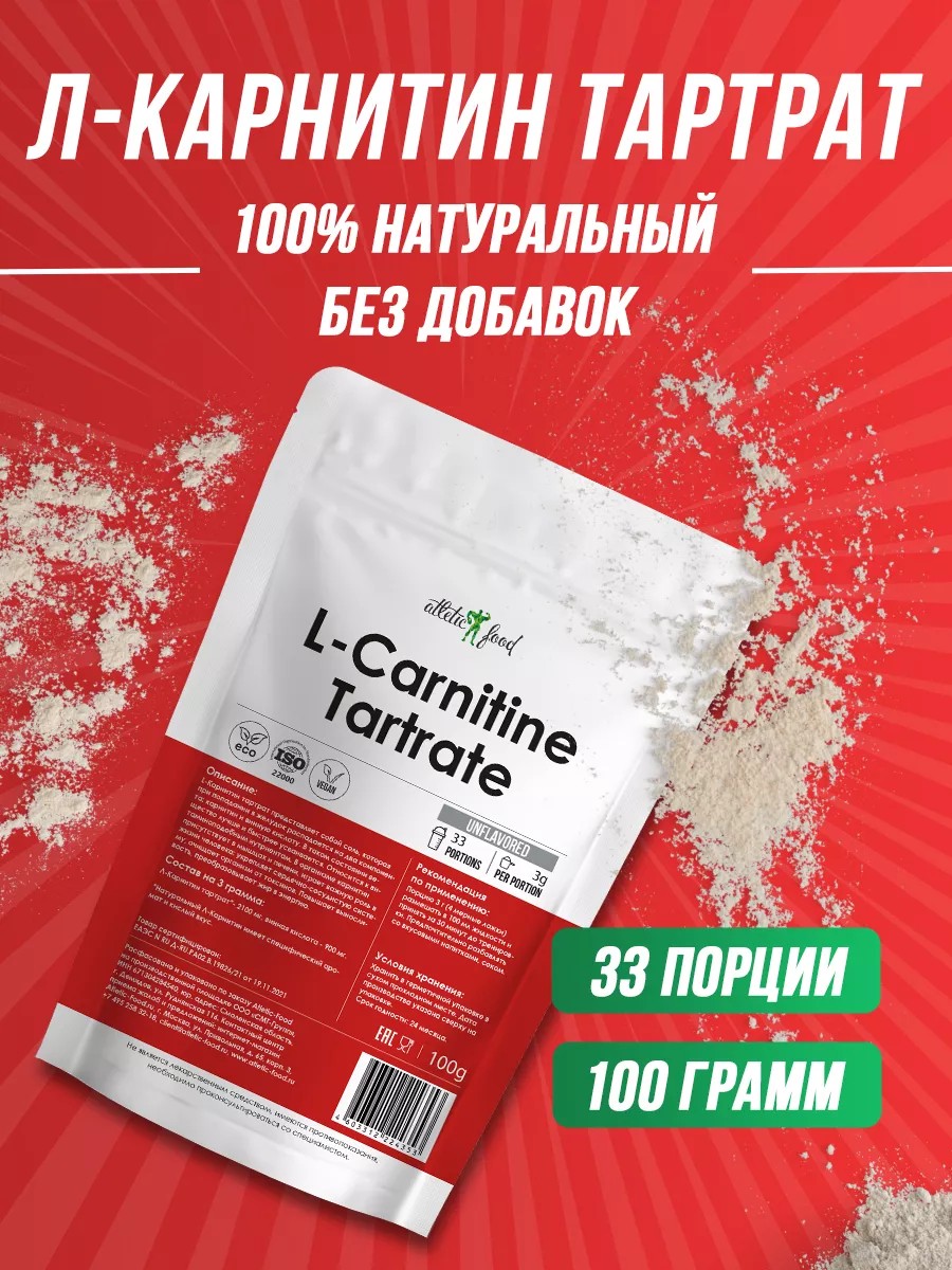ATLETIC FOOD Л-Карнитин Тартрат L-Carnitine Tartrate, 100 г
