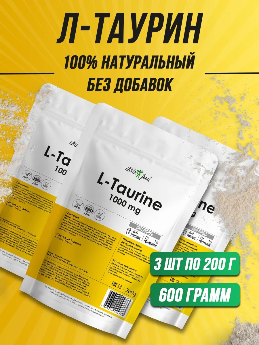 ATLETIC FOOD Л-Таурин в порошке L-Taurine 1000 mg, 3 шт по 200 г