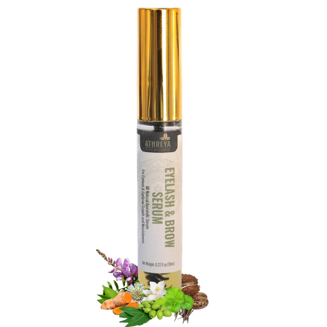 Athreya Herbs Healthy Eyelash & Brow Serum | Pure Ayurvedic Botanical Blend of Jasmine Gotu Kola Bacopa & False Daisy Oils | for Fuller Nourished Lashes & Brows (10 ml)