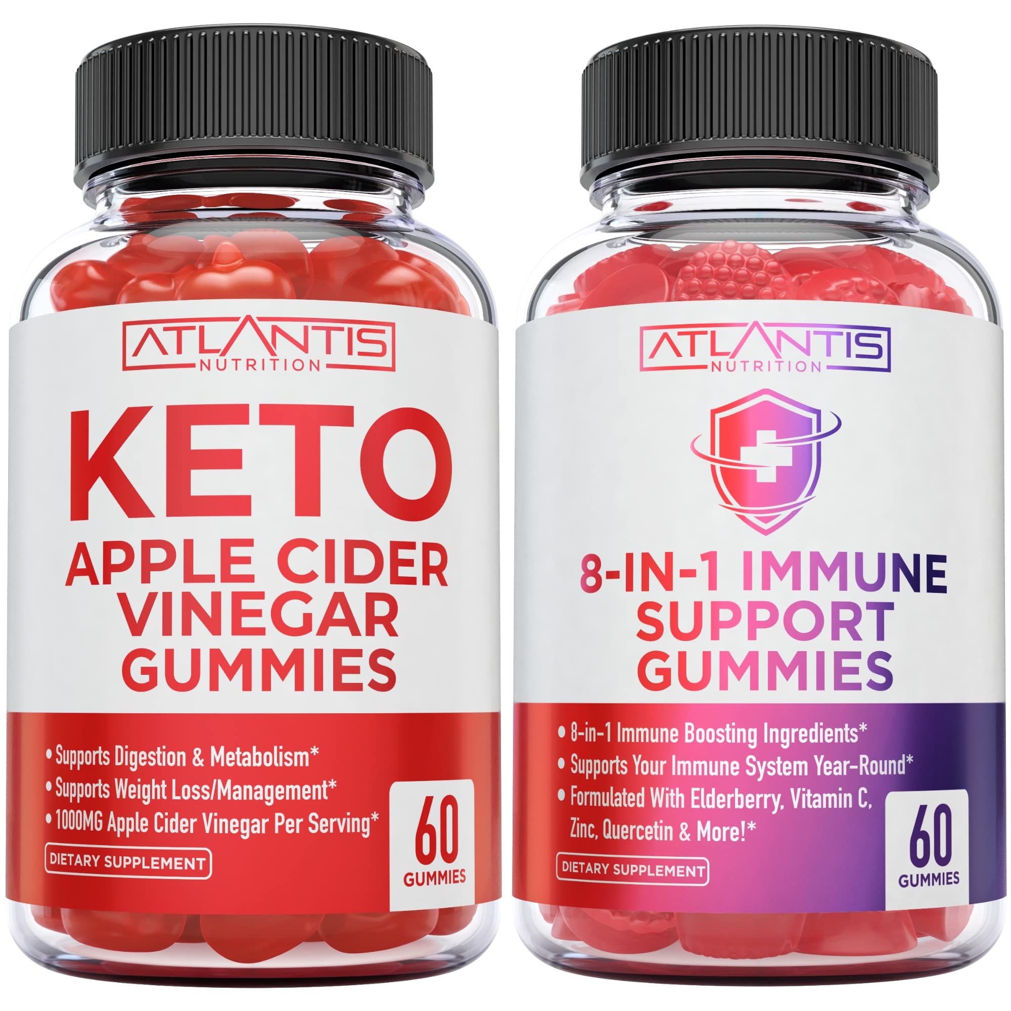 Atlantis Nutrition 60 Keto Apple Cider Vinegar Gummies + 60 8-in-1 Immune Support Gummies