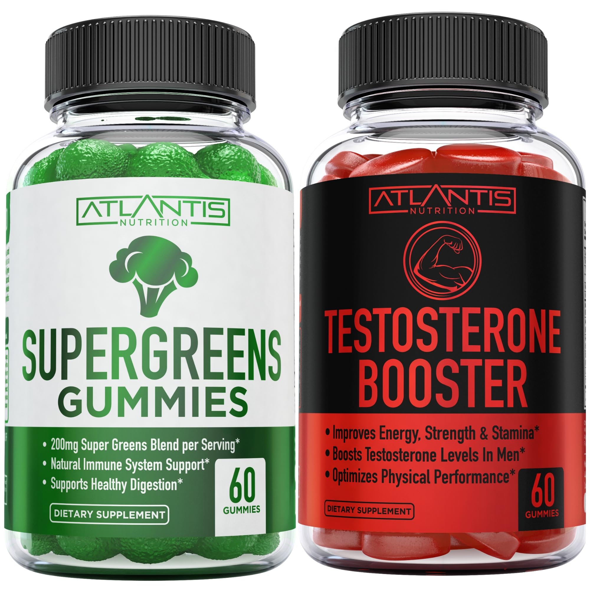Atlantis Nutrition Supergreens 60 Gummies + Testosterone Booster 2-Pack (120 Gummies)