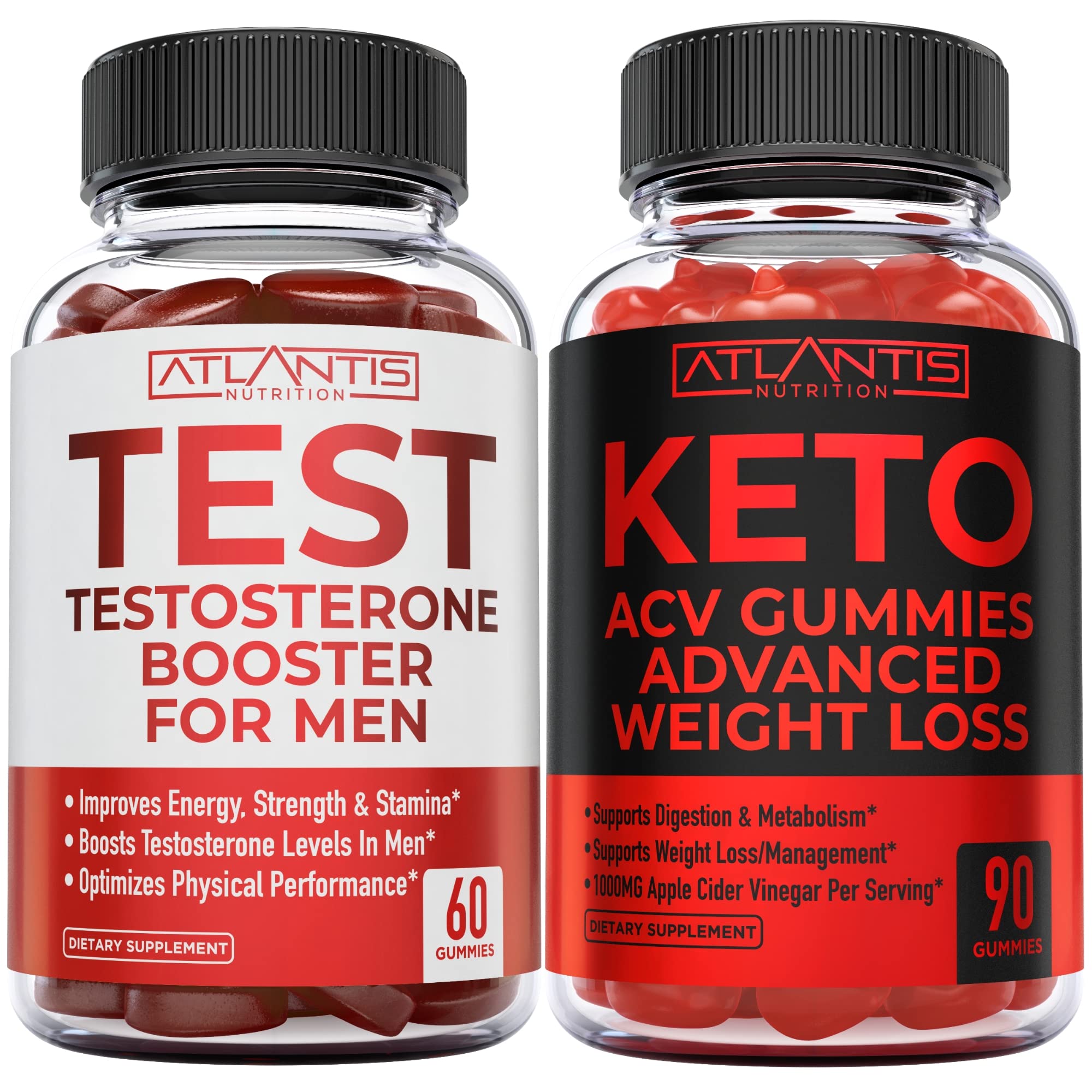 Atlantis Nutrition Testosterone Booster 60 Gummies + Keto Apple Cider Vinegar 90 Gummies