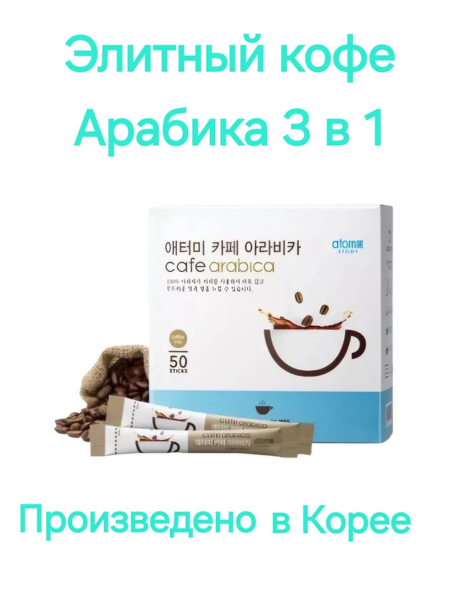 Корейский кофе 3 в 1, Элитный кофе Арабика в пакетиках. Содержит также натуральный казеин (молочный белок) и белый сахар. Для изготовления кофе используется только самые лучшие зерна, выращенные в Бразилии. Таким образом полностью натуральный состав, при этом ваш любимый вкус кофе со сливками остается прежним. Способ применения: высыпьте кофе в чашку (1 пакетик на 100 гр. воды), добавьте горячую воду, размешайте до полного растворения частиц, попробуйте, возможно именно Вам нужно на 30-50 гр. воды больше. Если Вы пьете кофе фирмы Атоми первый раз Вы таким образом подберете свой вкус. Помните, что баланс вкуса создан для небольшого колличества воды. Если любите большие порции и наливаете в 200 грамовую чайную чашку, то разводите 2 стика. Наслаждайтесь богатым и многогранным вкусом кофе!