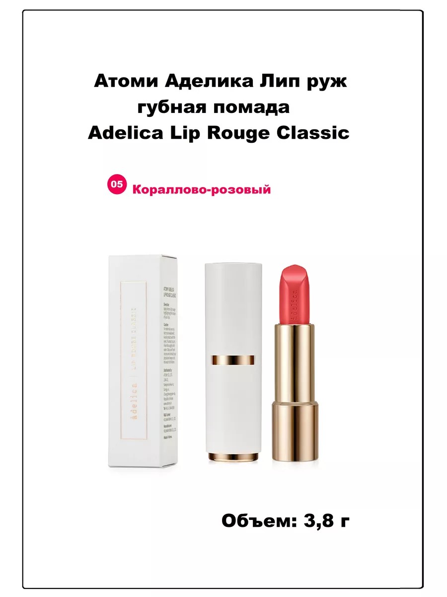 Аделика Лип руж губная помада Атоми (Adelica Lip Rouge Classic 05 кораллово-розовый) - губная помада Атоми с насыщенным и длительным пигментированным оттенком.