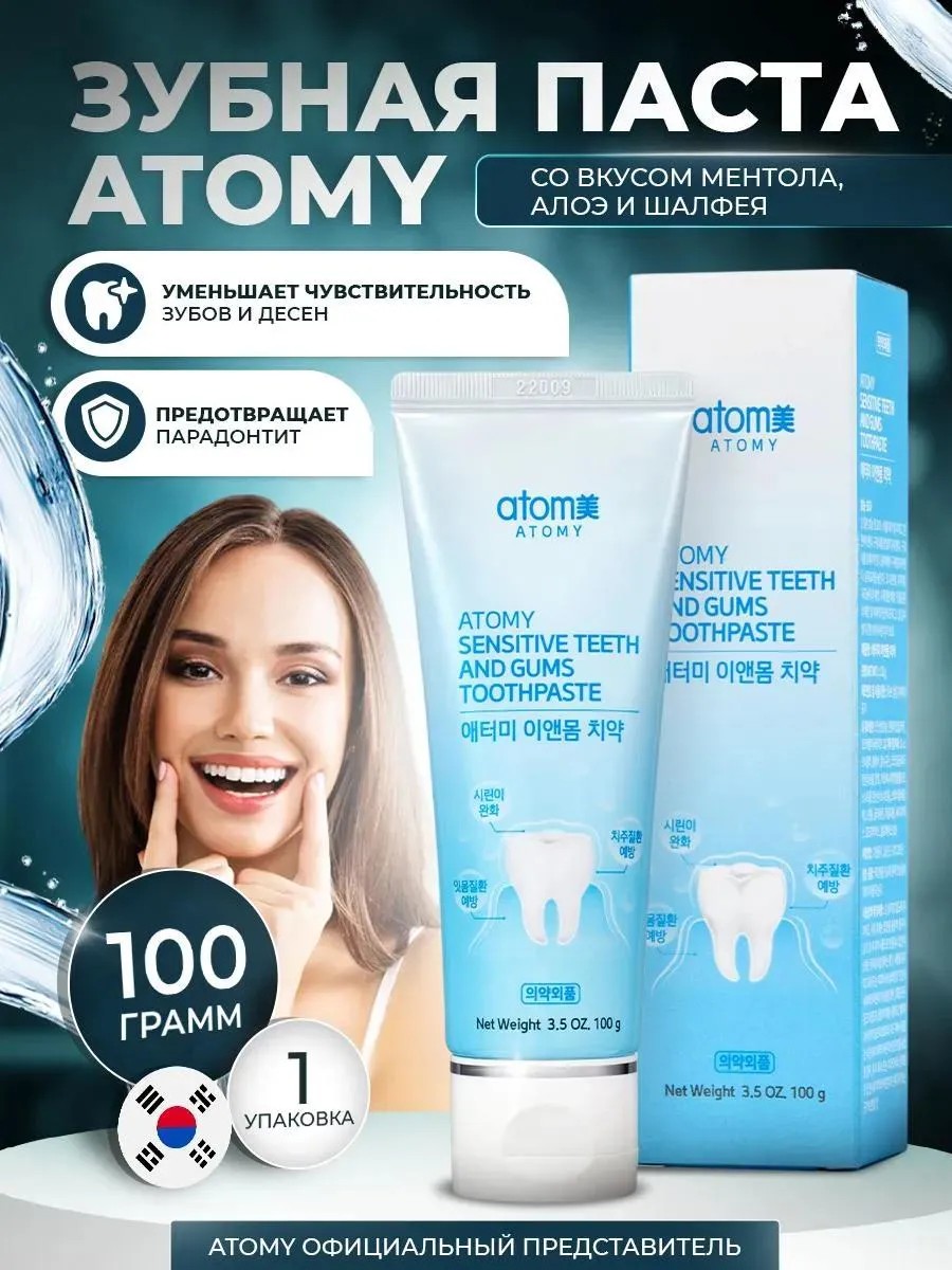 Зубная паста для чувствительных зубов и десен от корейской компании Atomy. Благодаря уникальному составу с ксилитом и кальцием, эта профессиональная паста обеспечивает укрепление десен и реминерализацию зубов. Она также эффективно защищает от кариеса. Корейская лечебная продукция Атоми - это надежное средство для чувствительных зубов, которое обеспечивает комплексный уход за полостью рта.
