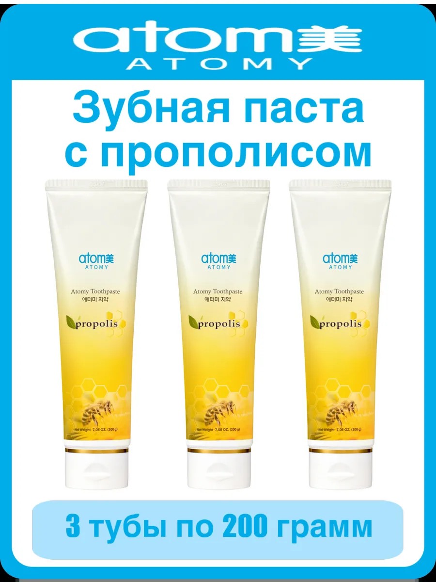 Atomy Зубная паста Атоми с прополисом, 3 тубы по 200 гр.